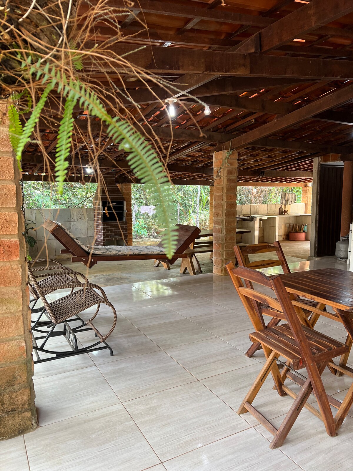 OBS: NÃO LOCAMOS PARA FESTAS/EVENTOS; PROIBIDO USO DE SOM. Espaço 20x40m, com sombras, piscina, deck com churrasqueira, cozinha. Armários, cooktop 5 bocas com botijão de gás instalado, dois garrafões de água mineral, bebedouro, 2 quartos com ar-condicionado, sendo um suíte, banheiro social (os dois com banho quente), alpendre com vários locais para colocar redes, geladeira. Quarto 1 (suíte): 1 cama casal, 1 cama solteiro. 1 rede; Quarto 2: 1 cama casal, 1 cama solteiro, 1 rede,