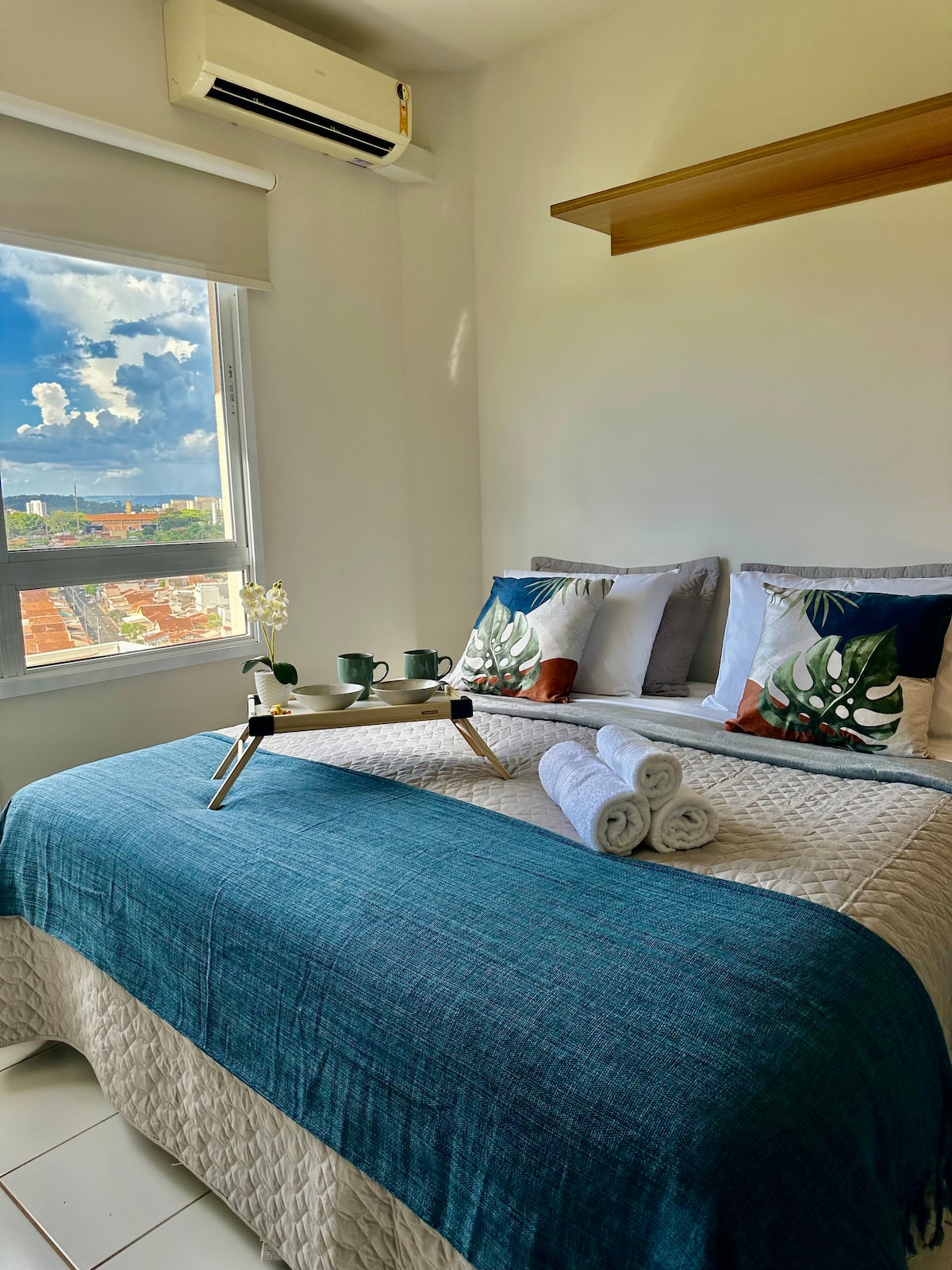Slakaðu á í þessu rólega og stílhreina rými. Stúdíó með þráðlausu neti, snjallsjónvarpi, loftræstingu, Alexu, eldhúsbúnaði, kaffihúsi, vatnssíu, hárþurrku, straujárni og öllu öðru þér til þæginda. Þú getur valið á milli 2 einbreiðra rúma eða 1 queen-size rúma. Njóttu sameiginlegra svæða eins og sundlaugar, lyftu, bílastæða, sólarhringsþjónustu, stofunnar fyrir nám eða fundi og sælkerapláss. Frábær staðsetning, nálægt San Francisco Hospital og UNAERP College.