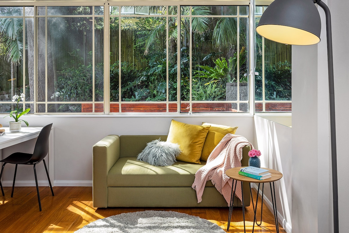 Einka og upphækkað frá götunni, inngangur að íbúðinni er rammaður inn af fallegum sandsteinsboga. Innanrýmin eru umkringd rótgrónum grasflötum og görðum sem eru til einkanota fyrir gestinn. Cremorne Point er staðsett við strendur hafnarinnar í Sydney. Umkringt fallegum gönguferðum við höfnina með útsýni yfir Sydney Harbour Bridge og óperuhúsið. Í nokkurra mínútna göngufjarlægð frá eigninni finnur þú glæsilegar grösugar brekkur sem eru tilvaldar fyrir kampavínsnesti við sólsetur.