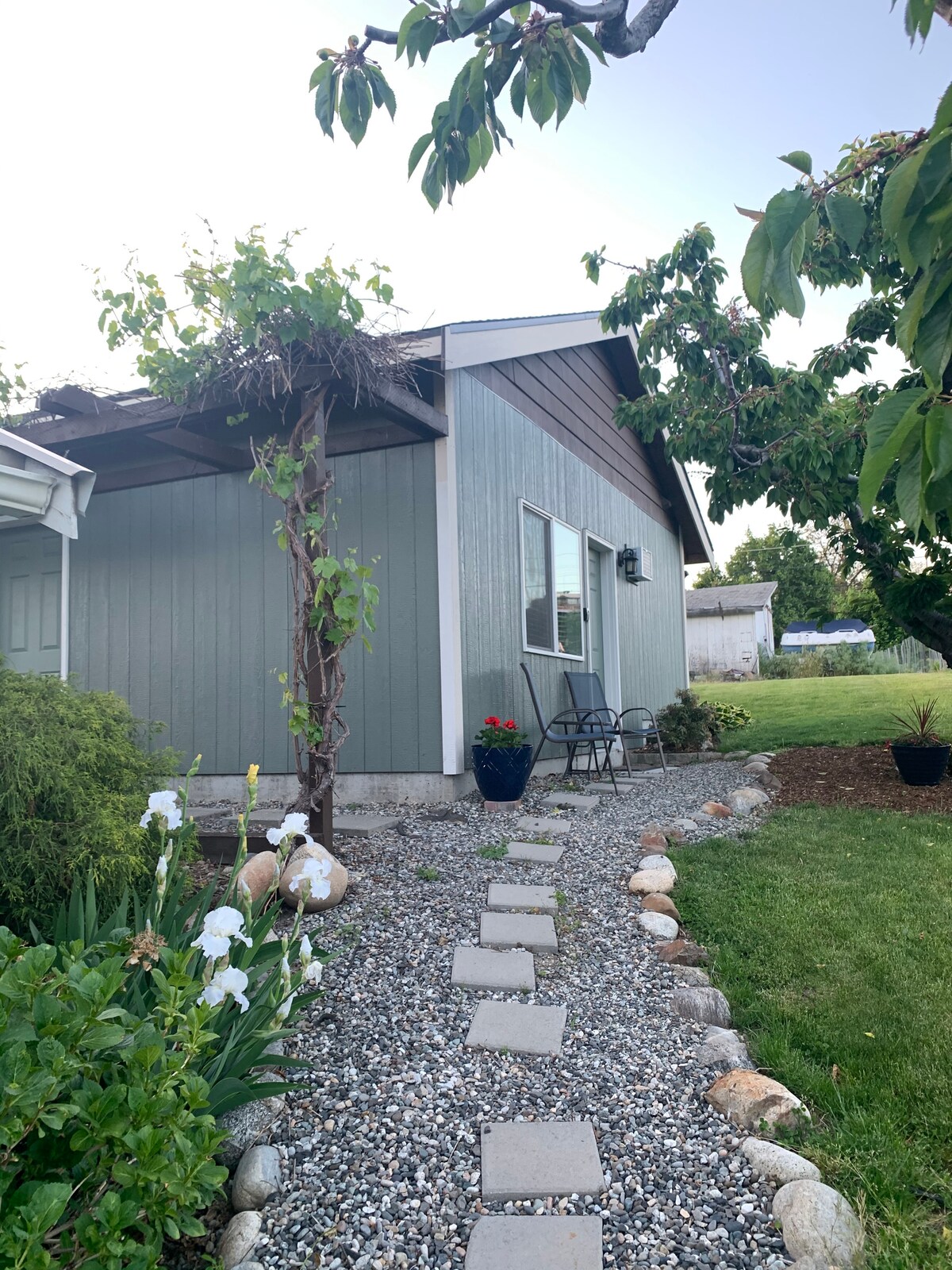 1.100 ferfeta heimili. Kyrrlátt umhverfi í víngerðinni okkar. Stórkostlegt útsýni yfir Cascade Mt 's og Columbia Valley. Fullkomin staðsetning fyrir afþreyingu í nágrenninu: Gorge tónleikar(40 mílur), skíði/snjóbretti (19 mílur), gönguferðir, golf með skjótum aðgangi að Leavenworth, Wenatchee og Chelan. Nágrannavíngerðin (Circle 5) og cidery (Union Hill) eru með lifandi tónlist. Vínhúsið okkar er með flöskusölu og gestir hafa aðgang að verönd. Vinsamlegast skoðaðu sérviðburði hér að neðan. Sjónvarp: Aðeins Netið. Ekkert kapalsjónvarp.