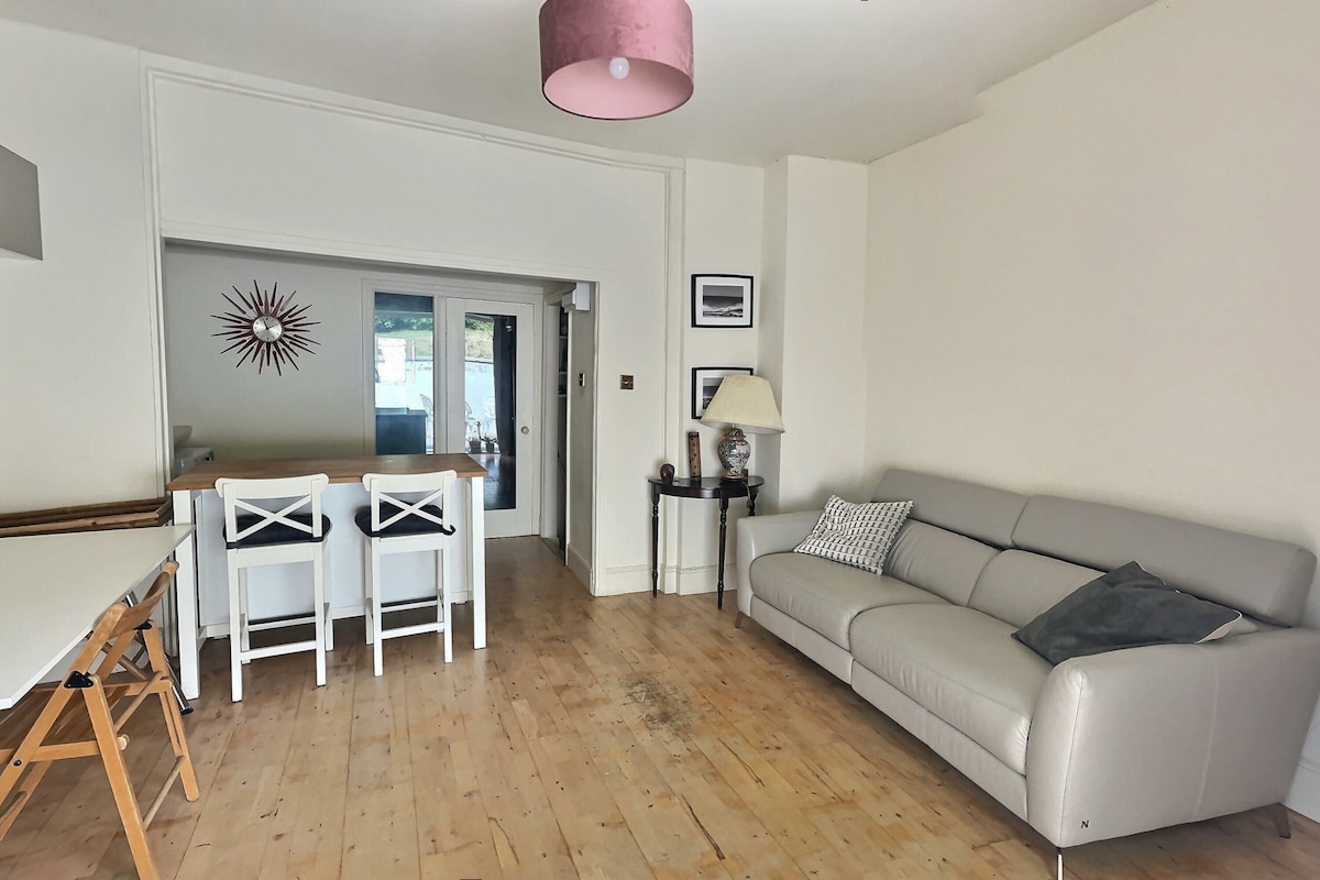 Nýtt, stórt, miðsvæðis, 3 svefnherbergi, garðíbúð *3 tvíbreið svefnherbergi, 2 móttökur, 2 baðherbergi *Nespresso, Bosch Washing/dryer, uppþvottavél, örbylgjuofn, straujárn, brauðrist…. Og fleira! *Einkagarður, grill, borðstofusett, 3 verandarstólar, sólhlíf *Gigafast fiber broadband, G.network - best in Ldn *Barnadót: Rúm, þægileg dýna, barnastóll, hoppustóll, hnífapör, diskar, bollar, borð, 2 stólar, leikmotta, leikföng, barnasápa, salernisseta og stóll. Garður: rennibraut, sjávarsíða *50 tommu sjónvarp með Netflix, Disney öppum.