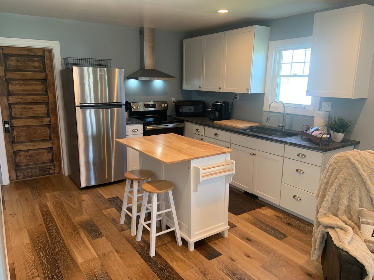 1 Bedroom Cottage opið allt árið í göngufæri frá Chippewa Boat Ramp og veiði. Þægilega staðsett nálægt veitingastöðum, matvöruverslun og þjóðgarði. Heimilið er notalegt og býður upp á eitt svefnherbergi með queen-size rúmi. Stofa býður upp á svefnsófa í fullri stærð og borðstofuborð með 4 stólum. Fullbúið eldhús. Njóttu útivistar með eldstæði. Á heimilinu er nóg af bílastæðum og gott aðgengi fyrir bátavagna.