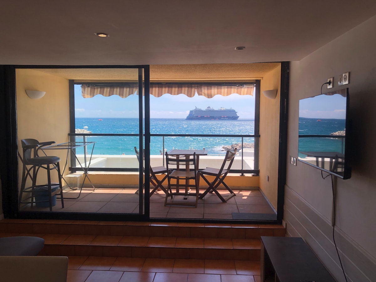 Lati og Avi bjóða þér upp á þægilegt, endurnýjað stúdíó sem snýr út að sjónum í öruggu og vörðuðu húsnæði. Þú þarft bara að fara yfir götuna til að komast á ströndina. Veröndin býður þér að njóta hvers augnabliks sem snýr að Miðjarðarhafinu. Stúdíóið er þægilegt, bjart og vel útbúið með alvöru vönduðu útdraganlegu rúmi sem auðvelt er að meðhöndla. Eldhúsið er vel búið (örbylgjuofn, spanhelluborð, ísskápur og kaffivél), baðherbergið efst.