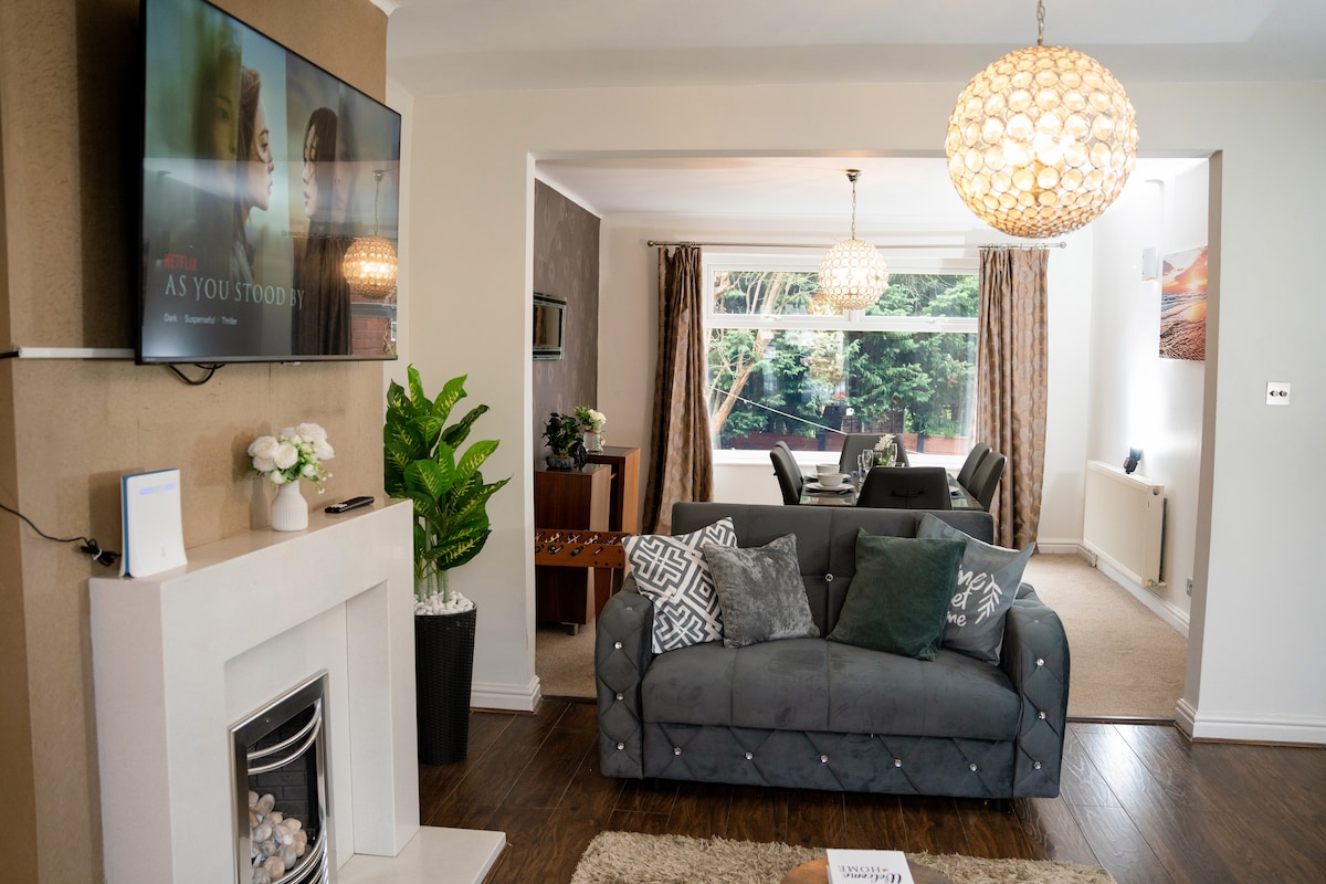 Verið velkomin á nýuppgert þriggja svefnherbergja heimili mitt í rólegu cul ‑de‑sac. Fallegar og notalegar innréttingar flæða inn í einkagarð. Í 2ja mínútna göngufjarlægð er farið að sporvagna- og strætóstoppistöðvum með reglulegri 15 mín. þjónustu í miðbæinn; miðborg Manchester og AO Arena eru í 10 mín. akstursfjarlægð. Heaton Park er í 5 mín göngufjarlægð; North Manchester General Hospital er í 5 mín akstursfjarlægð. Hratt þráðlaust net, ókeypis bílastæði og auðvelt aðgengi að M60 lýkur hverri dvöl! Engin gæludýr og engin samkvæmi, því miður! Reykingar eru stranglega bannaðar!