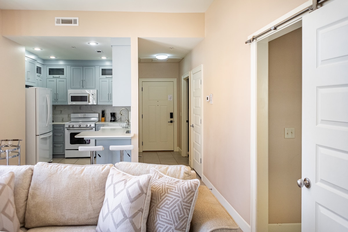 Þér mun líða vel í íbúðinni okkar með einu svefnherbergi sem er staðsett í besta hverfinu í miðborg Bentonville. „Peddler's Place“ er aðeins 0,6 mílur frá miðbænum og þú getur því gengið að verslunum og veitingastöðum á staðnum og hjólað stutta leið að göngustígunum. Við erum einnig staðsett í aðeins 2,7 km fjarlægð frá nýja Walmart-háskólasvæðinu. Gistu í miðju alls og njóttu lúxusrúmfata, nútímalegra innréttinga og fullbúins eldhúss.