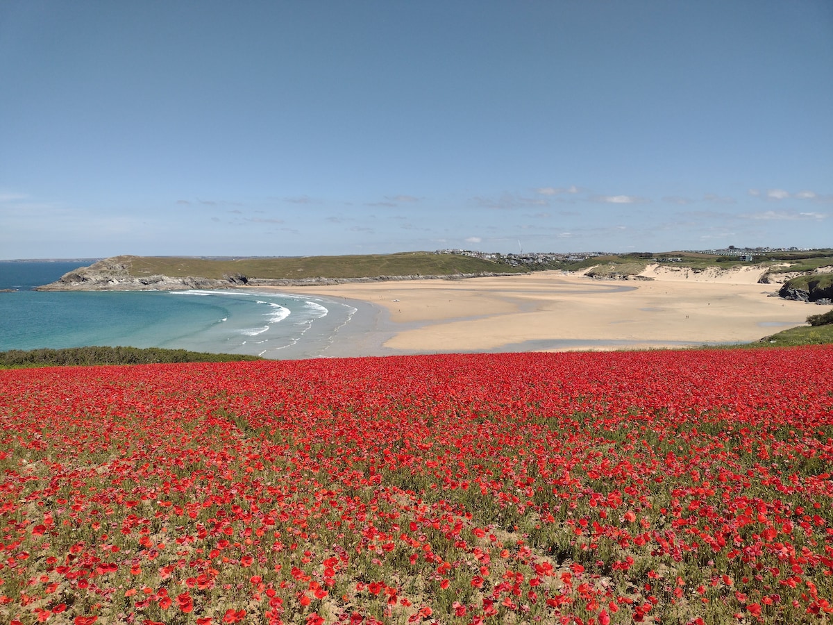 Heimili okkar er staðsett í strandþorpinu Holywell Bay og er aðeins í nokkurra mínútna göngufjarlægð frá hinni frægu Gull Rocks við Holywell-strönd. Vaknaðu, finndu kaffið, sjáðu sjóinn og skoðaðu fallegu sýsluna okkar. Innritaðu þig á heimili að heiman. Við búum í litlu þorpi sem státar af einni bestu Cornish strönd. Við erum í göngufæri frá ströndinni og klettagönguferðum að nærliggjandi ströndum. Strætisvagnastöð er 30 metra frá íbúðinni og þaðan er hægt að fara til Newquay eða Truro City.