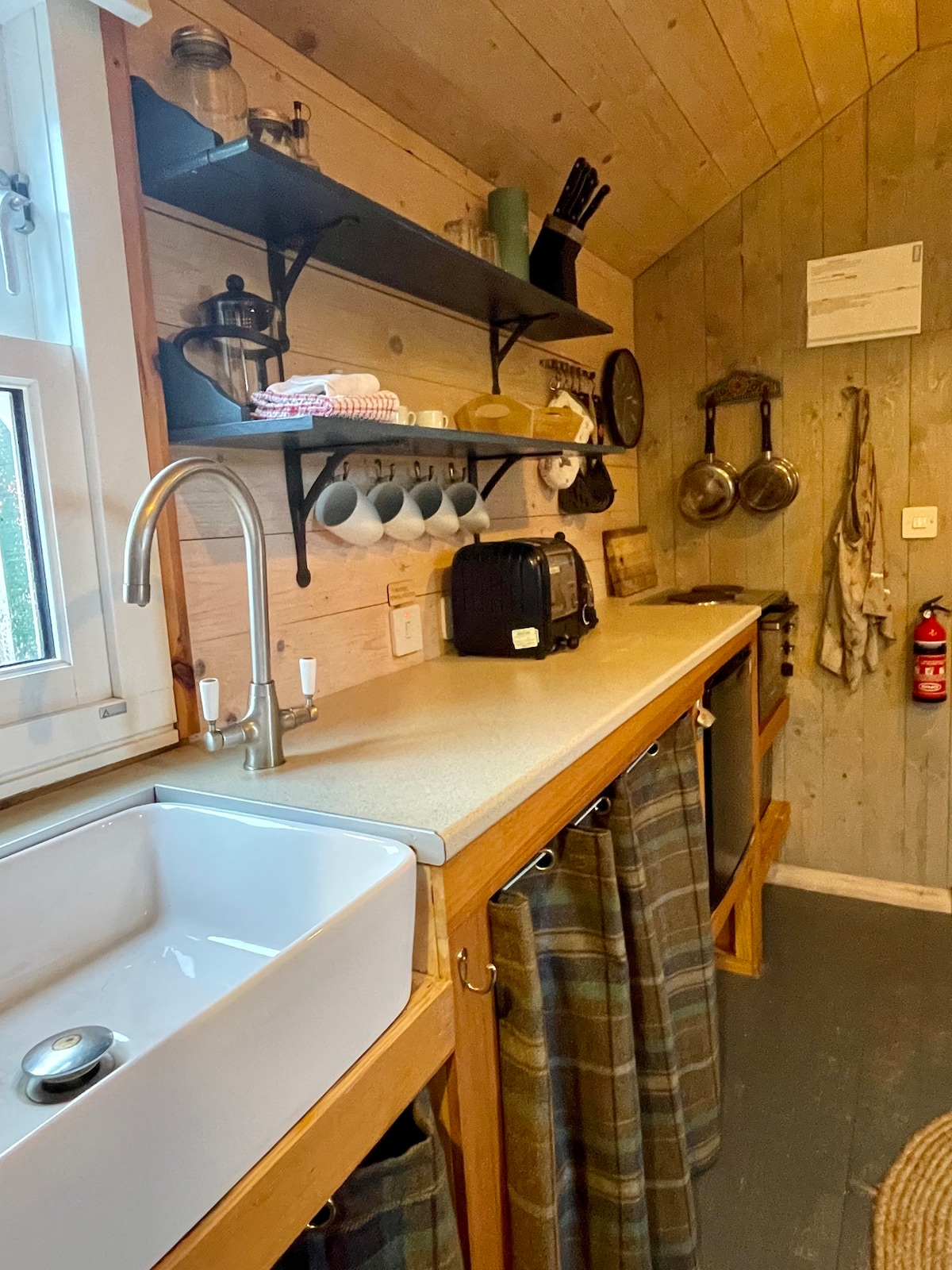 Red Fox Retreat er fullkominn lúxusútilegur staður fyrir lúxusútilegu. Kofinn er með bogadregna viðarinnréttingu frá bogadreginni dyragátt fyrir framan sem er fullkomlega útbúið king-size rúm með ótrúlegu útsýni yfir Trottenish-hrygginn og croft (ræktað land) sem umlykur eignina. Það er hlýlegt og notalegt að verja sig gegn hlutunum en samt létt og rúmgott. Kofinn er aðgengilegur í gegnum stórbrotið svæði undir beru lofti.