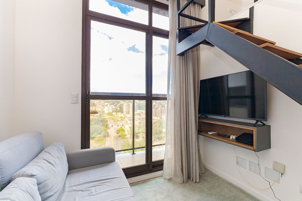 Stúdíóherbergi í Lifespace Curitiba fyrir framan verslunarkeðjuna Curitiba, nýtt og á besta svæði borgarinnar! Tilvalið fyrir pör, fjölskyldur, stjórnendur og ferðamenn. Hún er á 14. hæð í blokk A, búin queensize-rúmi, svefnsófa, loftræstingu, þráðlausu neti og SmarTV. Íbúðarhús með líkamsræktarstöð, upphitaðri sundlaug, sauna og leikfangasafni meðal annars. Við hliðina á Hard Rock Cafe, Rua 24h/Bus Linha Turismo, Av. Batel, Arena da Baixada og Hosp. Pequeno Príncipe (sjá + nánari upplýsingar hér á eftir). Bílastæði eru innifalin í daglegu verði!