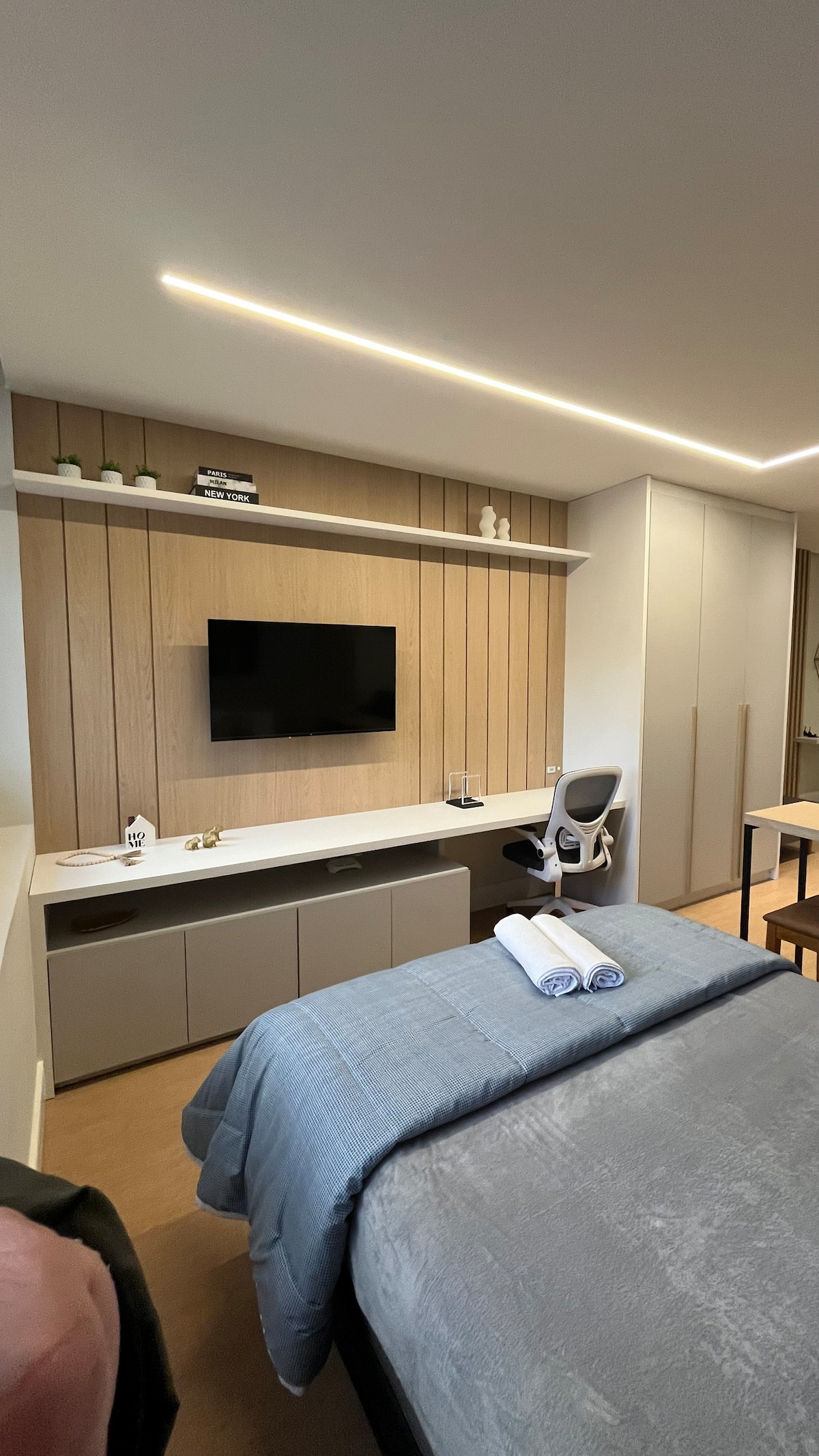 Studio de 26m² com vista Incrível do 23º Andar - Piscina coberta e aquecida Preparamos cada cantinho com carinho para que sua estadia seja prática, confortável e sem nenhuma preocupação. O studio foi pensado para unir funcionalidade e elegância, com tudo o que você precisa para se sentir em casa. A decoração foi planejada nos mínimos detalhes para garantir bem-estar, praticidade e aquela sensação gostosa de “estou no lugar certo”. Aproveite cada instante e sinta-se em casa.