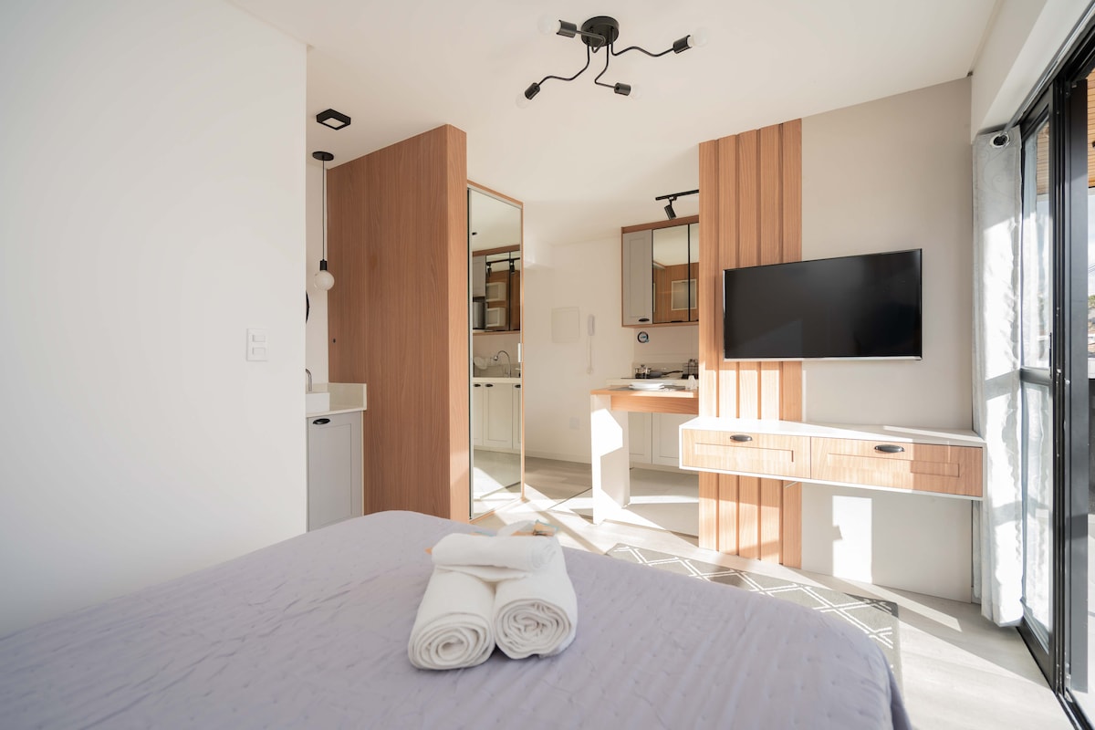 Frábær íbúð í Batel með líkamsræktarstöð, þráðlausu neti og loftkælingu