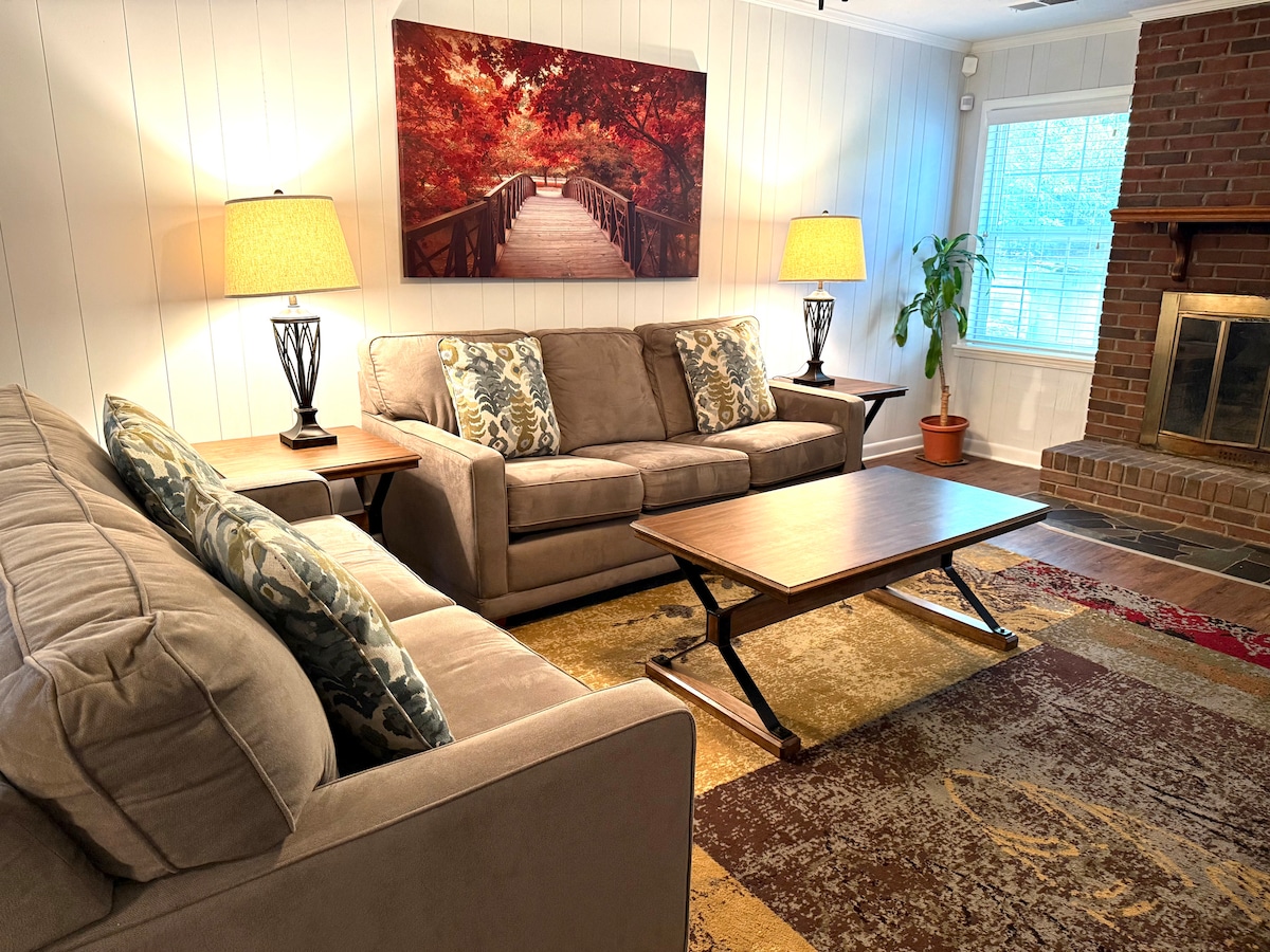 Þér mun líða eins og heima hjá þér í þessu fallega fjögurra herbergja, tveggja baðherbergja einbýlishúsi. Allt húsið verður til ráðstöfunar meðan á dvöl þinni stendur. Þessi eign er staðsett í friðsælu hverfi, nálægt fjölda þekktra áfangastaða: Fort Moore Army Base Columbus State University Chattahoochee Riverwalk Coca-Cola Space Science Center, South Commons Softball Complex Whitewater Express RiverCenter for the Performing Arts Peachtree Mall Midtown and Downtown og meira
