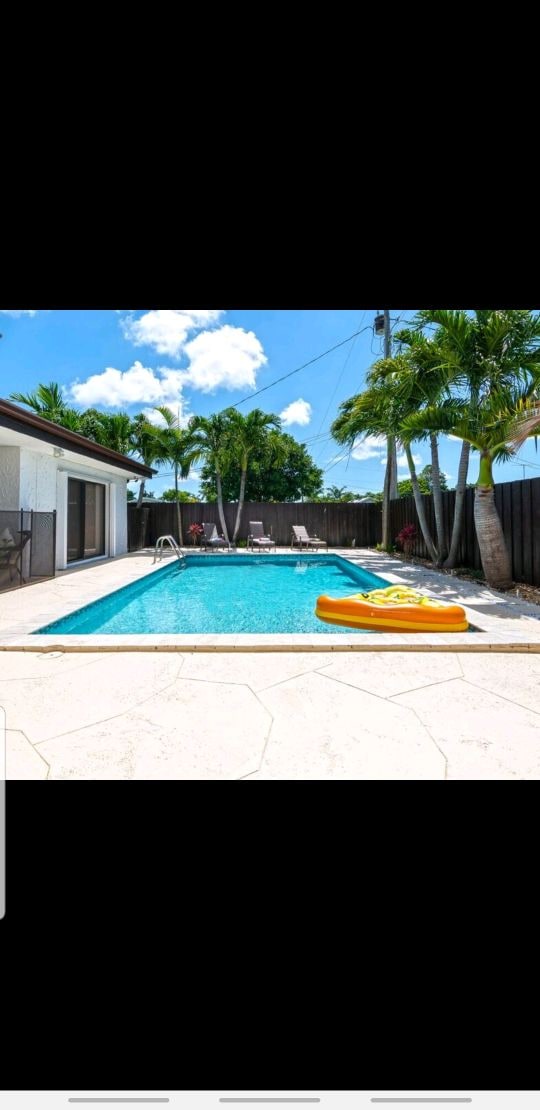 Slakaðu á við upphitaða einkasundlaugina þína eftir að hafa skoðað sólríkar strendur Miami í nokkrar mínútur. Bjarta þriggja svefnherbergja heimilið er með fullbúið eldhús, hröðu þráðlausu neti og þægilegri stofur sem opnast að gróskumiklum, afgirtum garði sem er fullkominn fyrir fjölskyldumat undir pálmatrjánum. 🏊🏼♀️ Einka upphitað sundlaug 🌊 20 mínútur að ströndinni 💻 Háhraða þráðlaust net og vinnuaðstaða 🍳 Fullbúið eldhús og þvottahús 🚤 Bátaleiga og viðburðir í nágrenninu 🛏️ Rúm í king-stærð og queen-stærð 🪟 Myrkvunargluggatjöld Bókaðu afslappandi frí í dag!