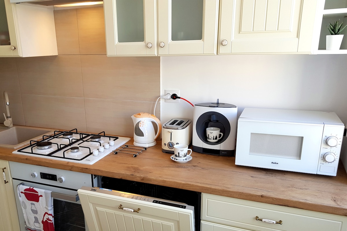 Stór íbúð staðsett í miðjunni en í rólegri hluta með tveimur svefnherbergjum í fullri stærð ( í hverju rúmi 200x160), stórri stofu með útfelldu horni, 55 tommu snjallsjónvarpi með ÞRÁÐLAUSU NETI og sjónvarpi og svölum með útsýni yfir borgina og Jasna Góra. Baðherbergi með baðkeri eða sturtu með handklæðum og þurrkara. Fullbúið eldhús ( stór ísskápur, eldavél með ofni, uppþvottavél, ketill, vatnskanna, brauðrist, diskar og öll eldunaráhöld).