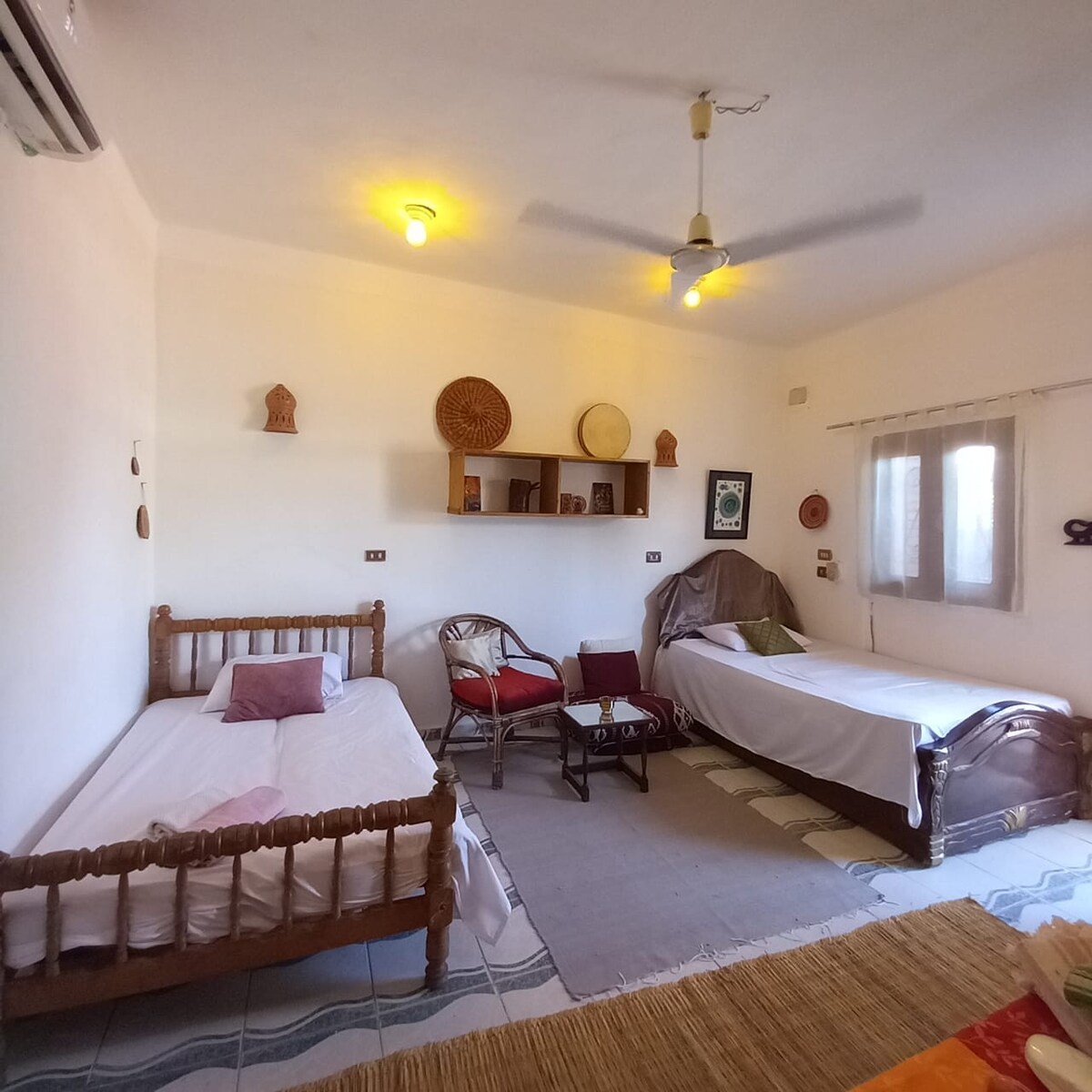 Slakaðu á í friðsælu einkastúdíói okkar í hjarta Assalah og í ekta beduin-hverfi ( bak við Solaris Dahab og Beit Theresea) í minna en 2 mín. fjarlægð frá sjónum og 1 mín. til Assalah-markaða . Og þú getur notið sjávargolunnar um leið og þú slakar á í notalegu setusvæði sem snýr í norður. Við erum með sterkt þráðlaust net (beinirinn okkar er á staðnum en ekki sameiginlegur) ef þú vilt ljúka verkinu .