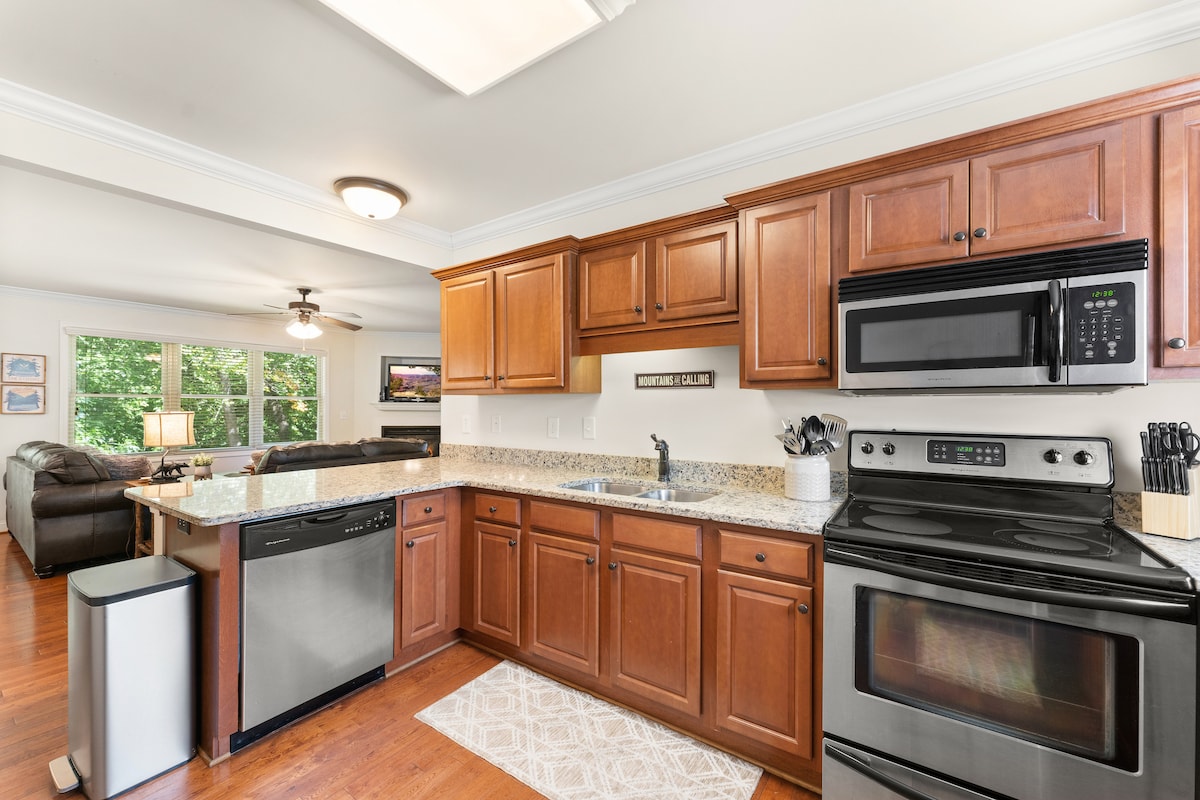 Upplifðu allan sjarma og afþreyingu í miðbæ Blue Ridge í þessari fallegu íbúð í miðborginni. Gakktu að fjölda veitingastaða og verslana, sötraðu vín á svölunum með útsýni yfir Blue Ridge Scenic Railway eða gistu í, slappaðu af og eldaðu kvöldverð í yndislega sælkeraeldhúsinu. Ertu að leita að ævintýrum? Auðvelt er að komast að mikilli útivist frá þessum fullkomna stað í miðbænum...þú getur notið þess besta úr báðum heimum! Komdu og njóttu alls þess sem Blue Ridge hefur upp á að bjóða!