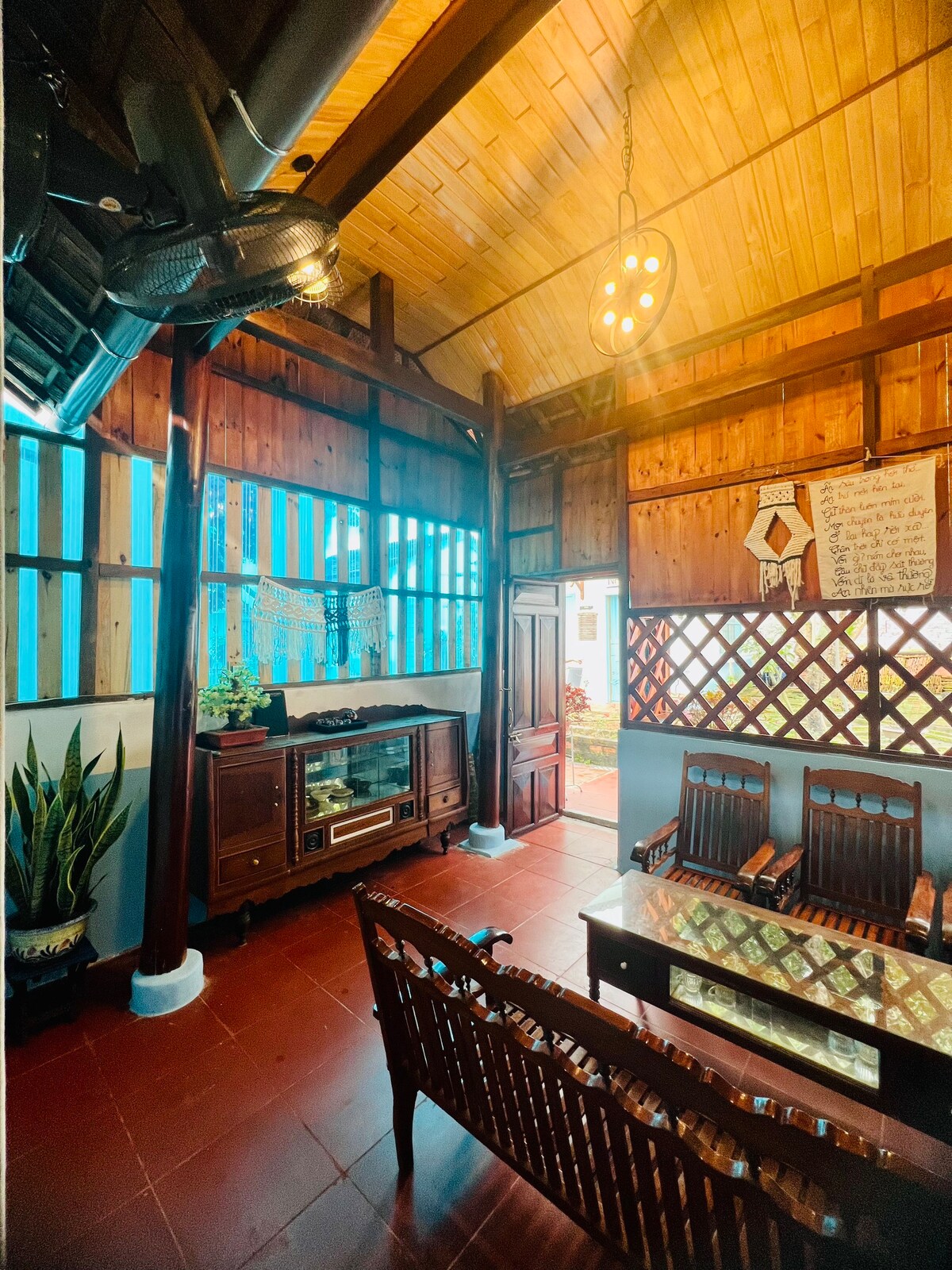 Tận hưởng không gian riêng tư, yên tĩnh với phòng giường king rộng rãi, có ban công riêng nhìn ra vườn cây xanh mát. Phòng được thiết kế tối giản nhưng đầy đủ tiện nghi: - Máy lạnh, Wi-Fi mạnh - Phòng tắm riêng sạch sẽ - Bàn trang điểm - Cửa kính lớn đón ánh sáng tự nhiên ✔ Thích hợp cặp đôi, người cần không gian thư giãn gần thiên nhiên nhưng vẫn thuận tiện di chuyển –chỉ cách TT TP. Kon Tum 5 phút lái xe * Homestay nằm tại TP Kon Tum, không phải Măng Đen. Vui lòng kiểm tra vị trí trước khi đặt