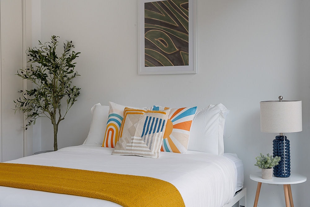 Upplifðu það besta sem borgin hefur upp á að bjóða í nútímalegu og stílhreinu íbúðinni okkar. Þessi eining er í háhýsi. Með 40+ þægindum. Á þakinu er sundlaug og líkamsræktaraðstaða. Staðsett í vinsælu og líflegu hverfi með fullt af verslunum, veitingastöðum og kaffihúsum í göngufæri. Aðgengi að almenningssamgöngum til að skoða borgina Hvort sem þú ert hér vegna vinnu eða leiks er einingin okkar fullkomin miðstöð fyrir dvöl þína.