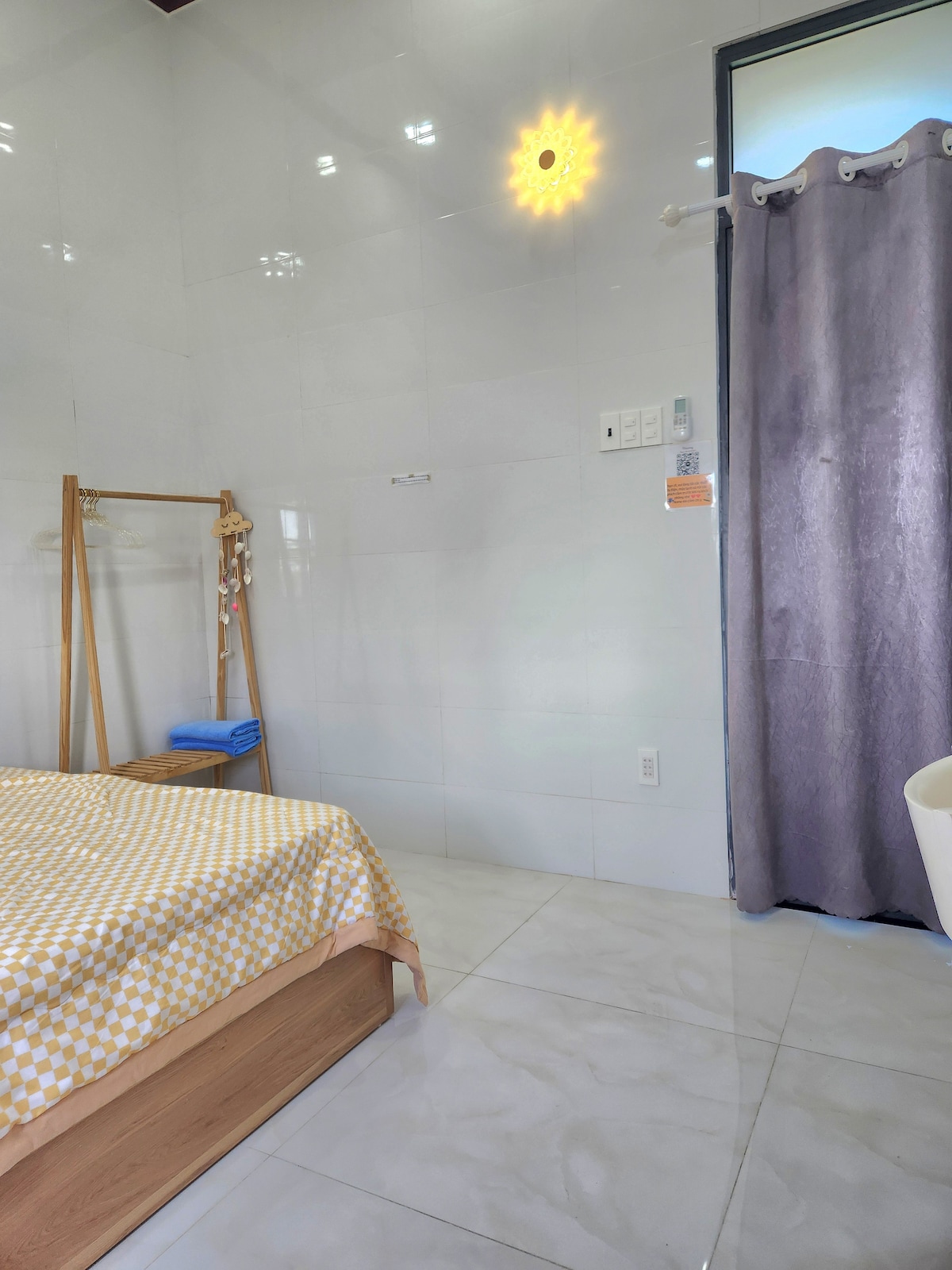 Mayhome er staðsett í annasömum miðbæ Phan Rang-borgar; útsýni yfir borgina; aðeins 3 km frá ströndinni. Íbúðin er með 1 svefnherbergi og 1 salerni með rúmgóðri stofu og eldhúsrými. Íbúðin er fullbúin tækjum og áhöldum til að fá þægilegustu dvöl þína. Athugaðu: 1/ Íbúðin er með loftkælingu í svefnherberginu og viftu í stofunni. 2/ Fyrir bókanir sem vara lengur en 14 daga er rafmagnið sem gestir nota meðan á dvölinni stendur skuldfært sérstaklega en það er ekki innifalið í herbergisverðinu.