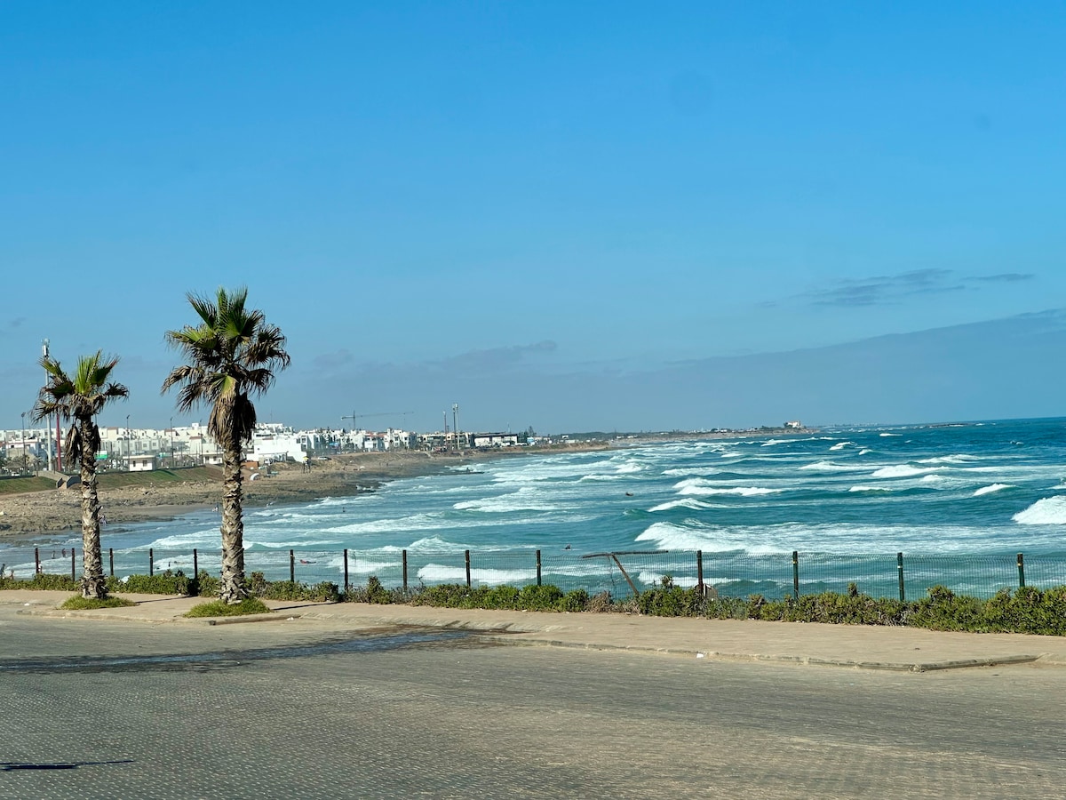Verið velkomin í íbúðina okkar í hjarta Casablanca, alvöru gersemi með mögnuðu útsýni yfir hafið og hina tignarlegu Hassan II mosku. Um leið og þú gengur inn um dyrnar er tekið á móti þér með sláandi útsýni yfir sjóinn sem skapar einstakt andrúmsloft sem teygir sig frá moskunni til verslunarhafnarinnar. Á hverjum degi getur þú dáðst að sólarupprásinni og sólsetrinu. Þessi upplifun gerir dvöl þína í Casablanca ógleymanlega.