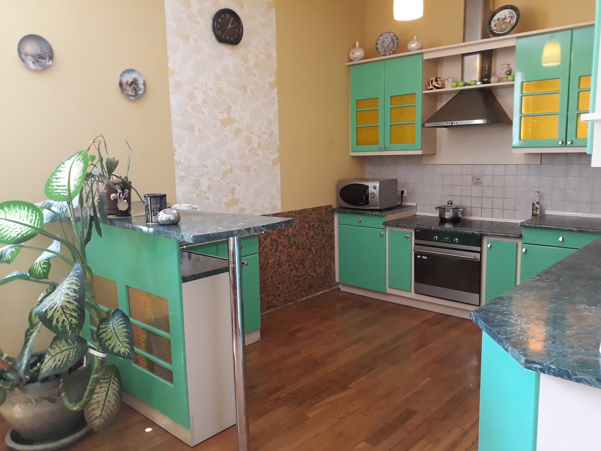Tveggja herbergja íbúðin er í sérhúsi með arni. Á hitunartímabilinu festum við arininn áður en gestir koma en allir næstu dagar verða að vera hitaðir af þér. Við útvegum allt sem þarf fyrir kveikjara á næstu dvalardögum. Arininn kveikir auðveldlega á sér og heldur hita í langan tíma. Þetta hefur ekki áhrif á þægindi þín en gerir dvöl þína notalega og rómantíska. Ég sendi þér allar nauðsynlegar leiðbeiningar um hvernig þú getur fest arininn.