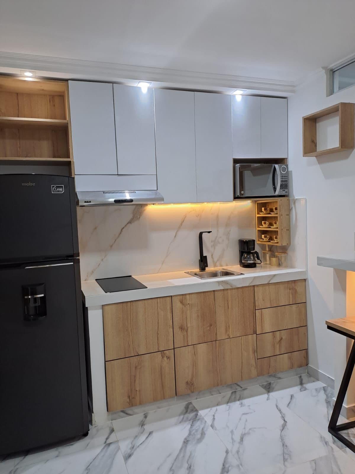 Notaleg glæný íbúð í einkageiranum, tilvalin fyrir gistingu fyrir tvo, nálægt El Dorado-verslunarmiðstöðinni og nokkrum matvöruverslunum, í 25 mínútna fjarlægð frá flugvellinum í Guayaquil, þar er öryggisvörður, félagssvæði, líkamsræktarstöð og almenningsgarðar fyrir börn. Leiga á íbúðinni er fullfrágengin, loftkæling er í aðalsvefnherberginu, stofunni og borðstofunni, ísskápnum, sjónvarpinu og internetinu. Hún er fullkomin fyrir pör og viðskiptaferðir.