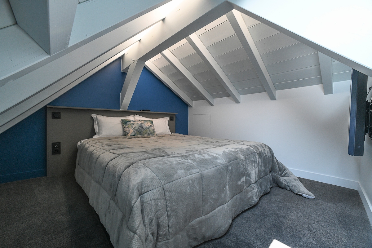 Bienvenue dans notre chambre 11 qui offre une jolie vue sur les montagnes environnantes. Cette chambre spacieuse est décorée dans un style moderne et élégant, avec des couleurs qui vous rappelleront les tons naturels du ciel bleu et du lac émeraude. Profitez de votre café du matin sur votre balcon privé et laissez-vous émerveiller par la vue magnifique qui s’offre à vous.
