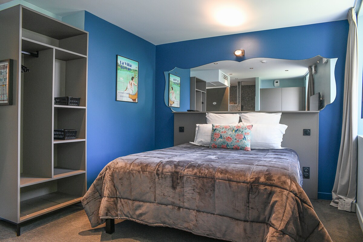 Slakaðu á í notalegu og þægilegu tvöföldu stúdíóunum okkar (22-26fm) með hjónarúmi eða útdraganlegu rúmi eftir conguration, loftkælingu, hljóðeinangruðum gluggum, myrkvunargluggatjöldum og sjónvarpi. Þú munt einnig njóta vinnusvæðisins með þráðlausu neti og öryggishólfi. Eldhúshornið auðveldar þér dvölina.