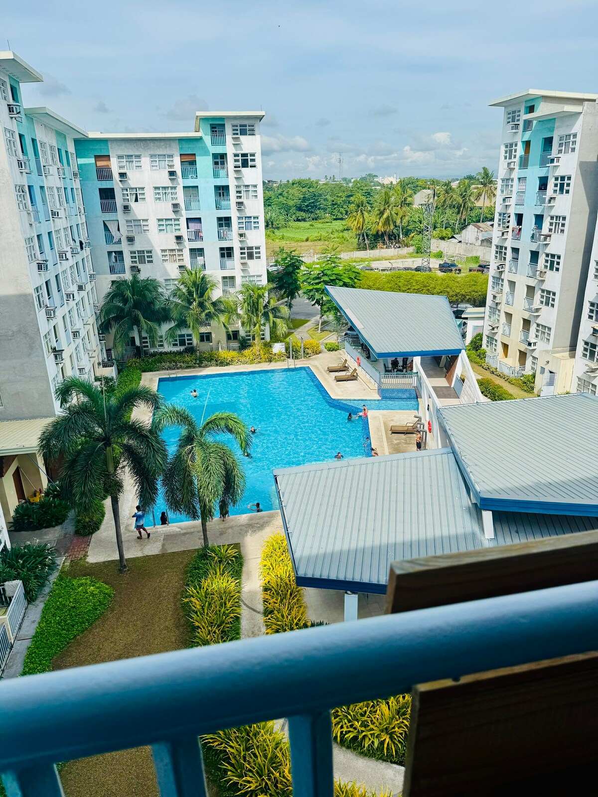 Bring the whole family to this great place with lots of room for fun. Can accommodate up to 10 people. Masters Bedroom, there's a queen size bed and 3 extra foam to use if more people stay. 2nd room, there are 3 layers, bunk bed (single, double, and double beds). Private Balcony is in front of the pool. 24/7 CCTV+security. 2 Airconditioned rooms. Hot and cold shower and bidet in the washroom to use. 50 inches smart TV. Private Parking (Php 200/night and Swimming Pool (Adult:Php80 and kids Php50)