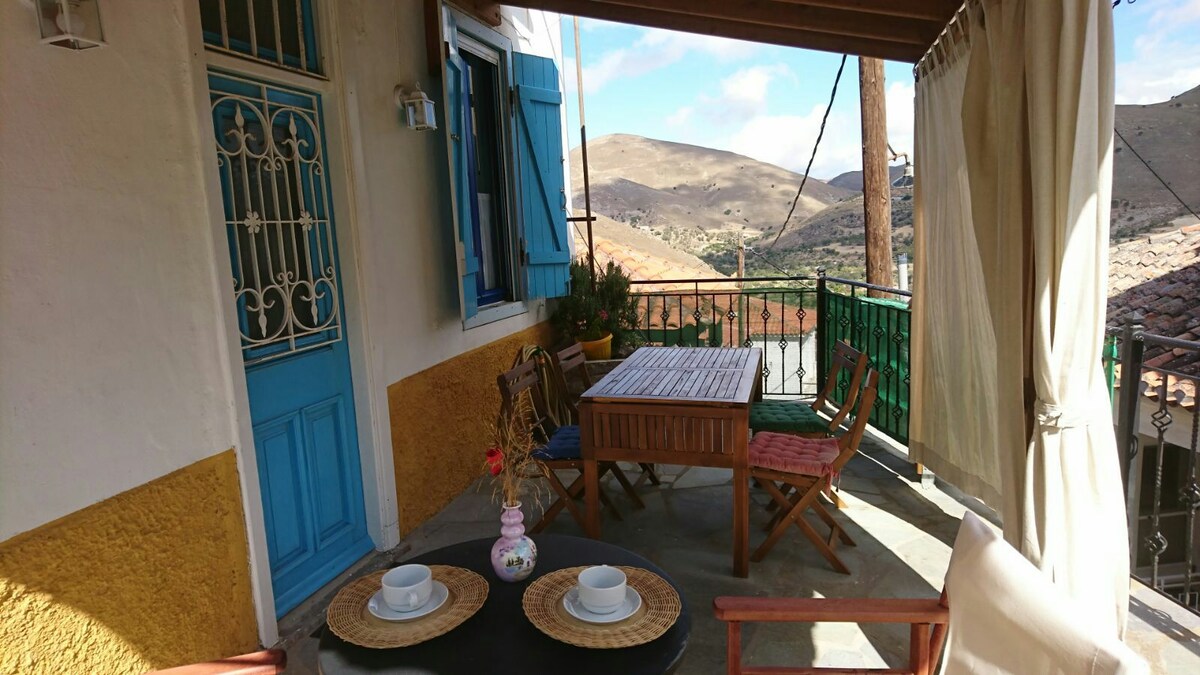 Húsið er í miðju einkennandi þorpinu Kaspakas, nálægt þorpstorginu þar sem þú munt finna kirkju, bar og matvörubúð. Það er í fimm mínútna bílferð frá aðalbænum og höfninni í Mirina; og aðeins 1,5 km frá sjónum og fallegu ströndinni í Aghios Ioannis. Stórir gluggar, staðsetningin og háhæð þorpsins gerir húsinu kleift að hafa alltaf ferskt loftslag. Róleg verönd með útsýni yfir hæðirnar. Panoramic greek Taverna aðeins 5 mín ganga.