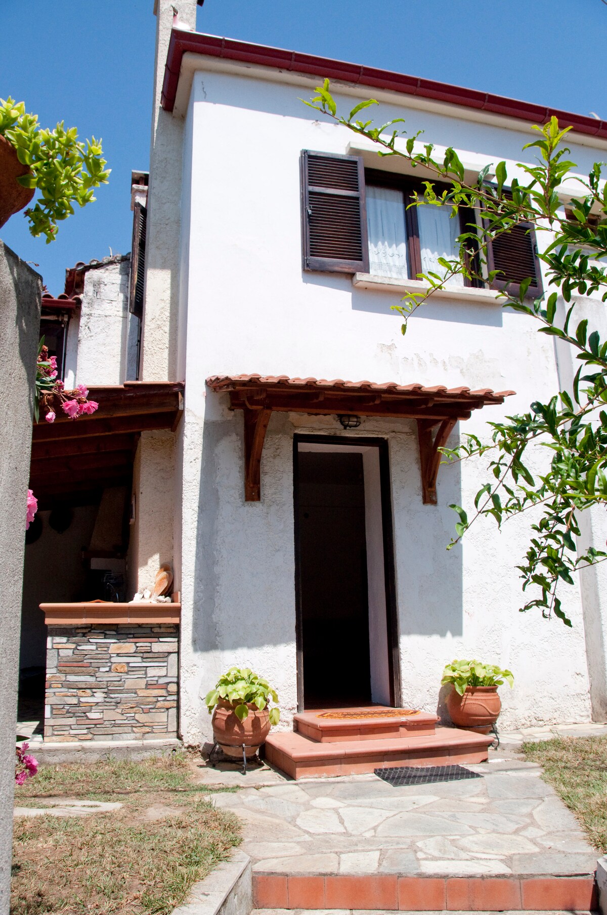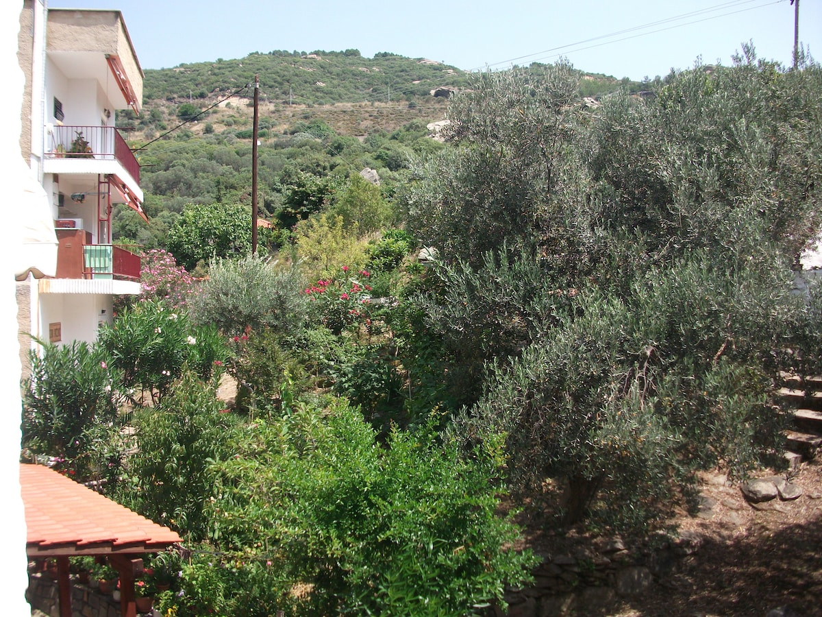 Hefðbundið hús á Sithonia-svæðinu, miðsvæðis á Chalkidiki, 1 klst. frá Thessaloniki, 4 km frá næstu strönd. Húsið samanstendur af tveimur hæðum, 1 svefnherbergi, 1 stofu með eldhúsi, 1 herbergi, 1 baðherbergi og litlum garði. Fullbúið eldhús, baðherbergi, grill og arinn. Húsið rúmar 5-6 einstaklinga. (1 svefnherbergi með tvíbreiðu rúmi, 1 svefnsófi í stofu og 1 svefnsófi í sérherbergi) . Gestir hafa alla aðstöðu (garðhúsgögn, bbc o.s.frv.). Húsið er í þorpinu „Metagitsi“, aðeins 4 km frá næstu strönd. Metagitsi er rólegt þorp með krár, ofurmarkaði og kaffihúsum. Sum þægindin sem þú munt njóta með okkur verða ókeypis bílastæði og þú getur einnig tekið gæludýrið þitt með þér af því að það er leyfilegt. Auk þess eru reykingar leyfðar og húsið hentar fjölskyldum og er barnvænt þar sem það er á jarðhæð með fallegum garði fyrir framan. Svo má ekki gleyma því að inniarinn verður á staðnum yfir vetrartímann.