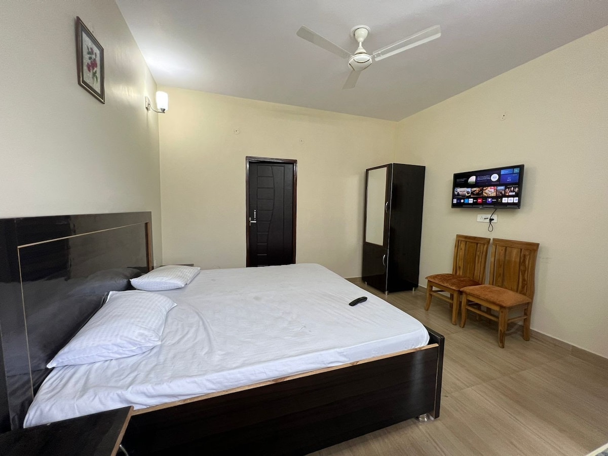 Hafðu það einfalt á þessum friðsæla og miðlæga stað. Eignin er staðsett í hjarta Dehradun, aðeins 200 metrum frá bæði Rajpur Road og Crossroad-verslunarmiðstöðinni. Hún er búin öllum þægindum og einnig umsjónarmanni sem gistir í eigninni. (Þú getur meira að segja eldað sjálf/ur ef þú hefur áhuga) Gestir þurfa að greiða 200 Rs aukalega á nótt fyrir hvert herbergi fyrir loftræstingu