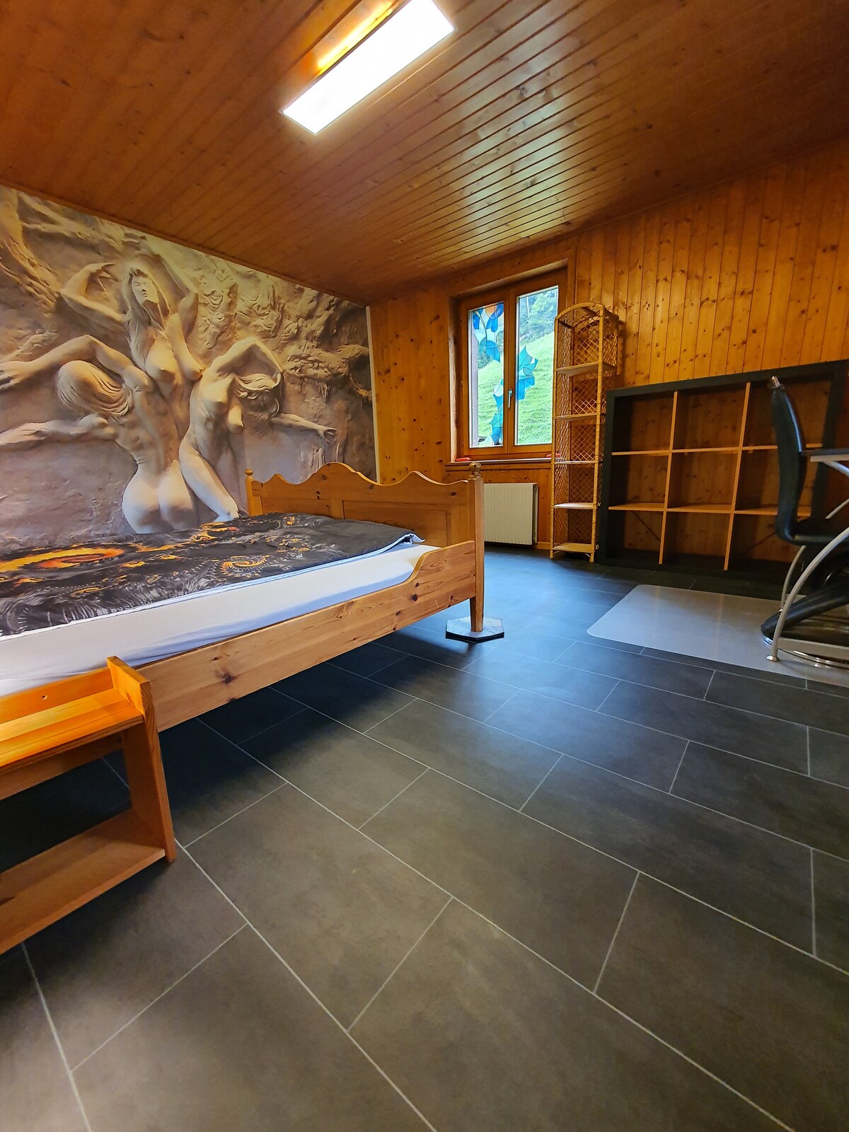 Venez vous ressourcer dans notre petit chalet cosy, totalement rénové et situé au milieu des champs. Vous bénéficierez d'une situation idyllique, en pleine nature, dans le calme absolu et avec une vue plongeante sur la vallée. Il s'agit d'un espace idéal et bien équipé pour les couples ou les familles (pouvant aller jusqu'à trois enfants). Proche de Delémont, vous pourrez découvrir la région du Jura, avec ses randonnées à pied ou à vélo, son tourisme et ses hauts-lieux comme Saint-Ursanne....