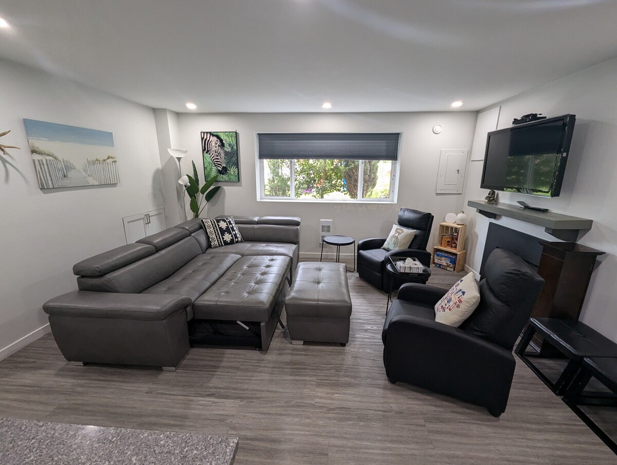 Verið velkomin á glæsilegt og stílhreint heimili að heiman! Þessi uppgerða kjallarasvíta með 1 svefnherbergi blandar saman þægindum og nútímahönnun og hentar fullkomlega fyrir vinnuferðamenn, pör eða gesti sem ferðast einir. • 30 - 45 mínútna akstur í miðborg Vancouver • 20–30 mínútna akstur frá YVR-flugvelli • Öll þægindi í nágrenninu, 5 mínútna akstur að Walmart, Save on Foods, Tim Hortons, Starbucks, áfengisverslun, veitingastöðum o.s.frv.