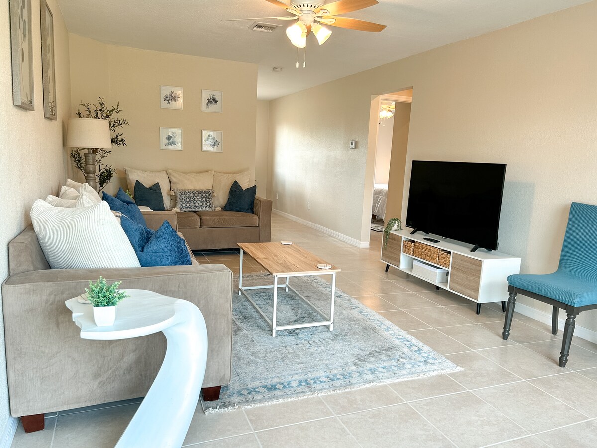 Uppgötvaðu þitt fullkomna afdrep! Þetta heillandi afdrep með 1 svefnherbergi og 1 baðherbergi er steinsnar frá sandströndum Fort Myers(45 mínútur) og býður þér upp á hina fullkomnu strandferð. En það er ekki allt – ævintýrin bíða aðeins klukkutíma akstur til hins heillandi Everglades þar sem undur náttúrunnar þróast við hverja beygju. Fyrir áhugafólk um stangveiði er stórfenglegt vatnið við Okeechobee-vatn í aðeins 35 mínútna fjarlægð og lofar spennandi afdrepum 🌴