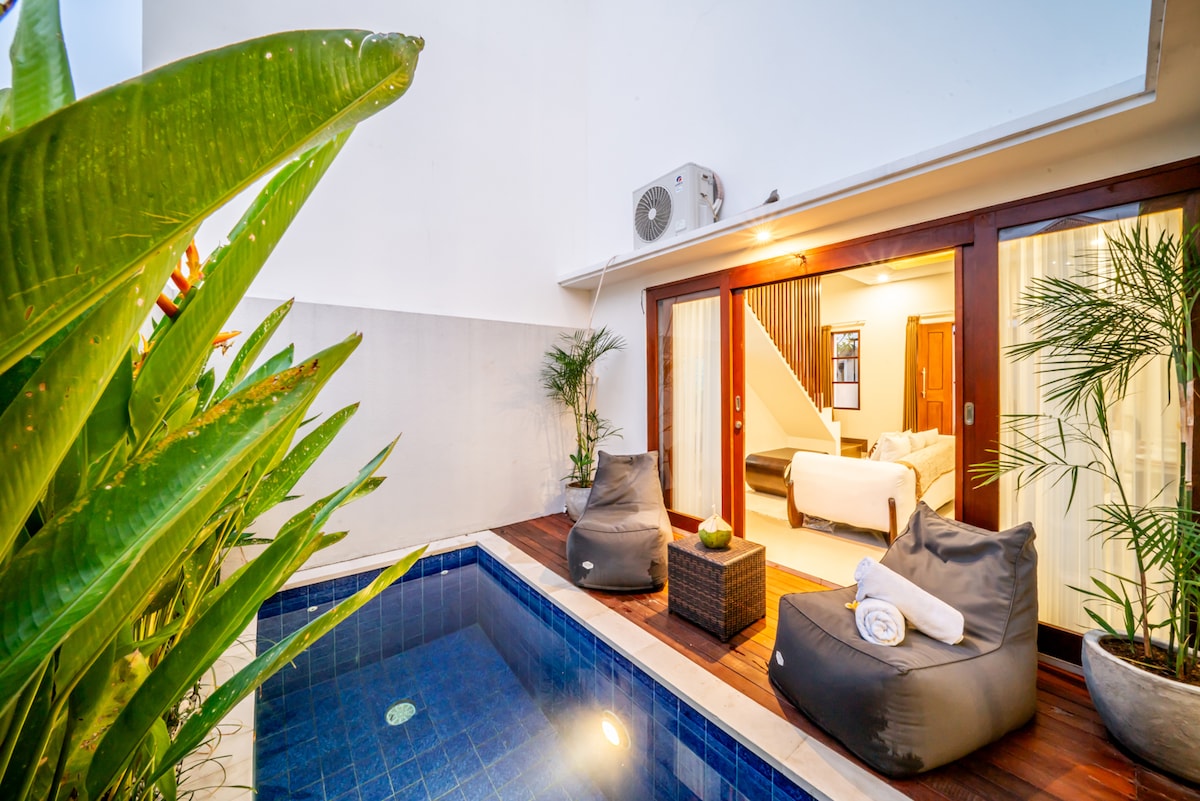 9 mínútna gönguferð á ströndina Verið velkomin til Mediterra Luna. Nýbyggða 2 svefnherbergja lúxusvillan okkar með Miðjarðarhafsþema hentar vel fjölskyldum, litlum hópum og pörum sem eru að leita sér að stílhreinu og nútímalegu fríi á Balí. Stutt ganga um ströndina, verslanir og veitingastaði og hannaður með þægindi og þægindi í huga. Njóttu rúmgóðrar og nútímalegrar inniaðstöðu og fjölskylduvænnar sundlaugar og palls til að slappa af í næsta afdrepi þínu á Balí.