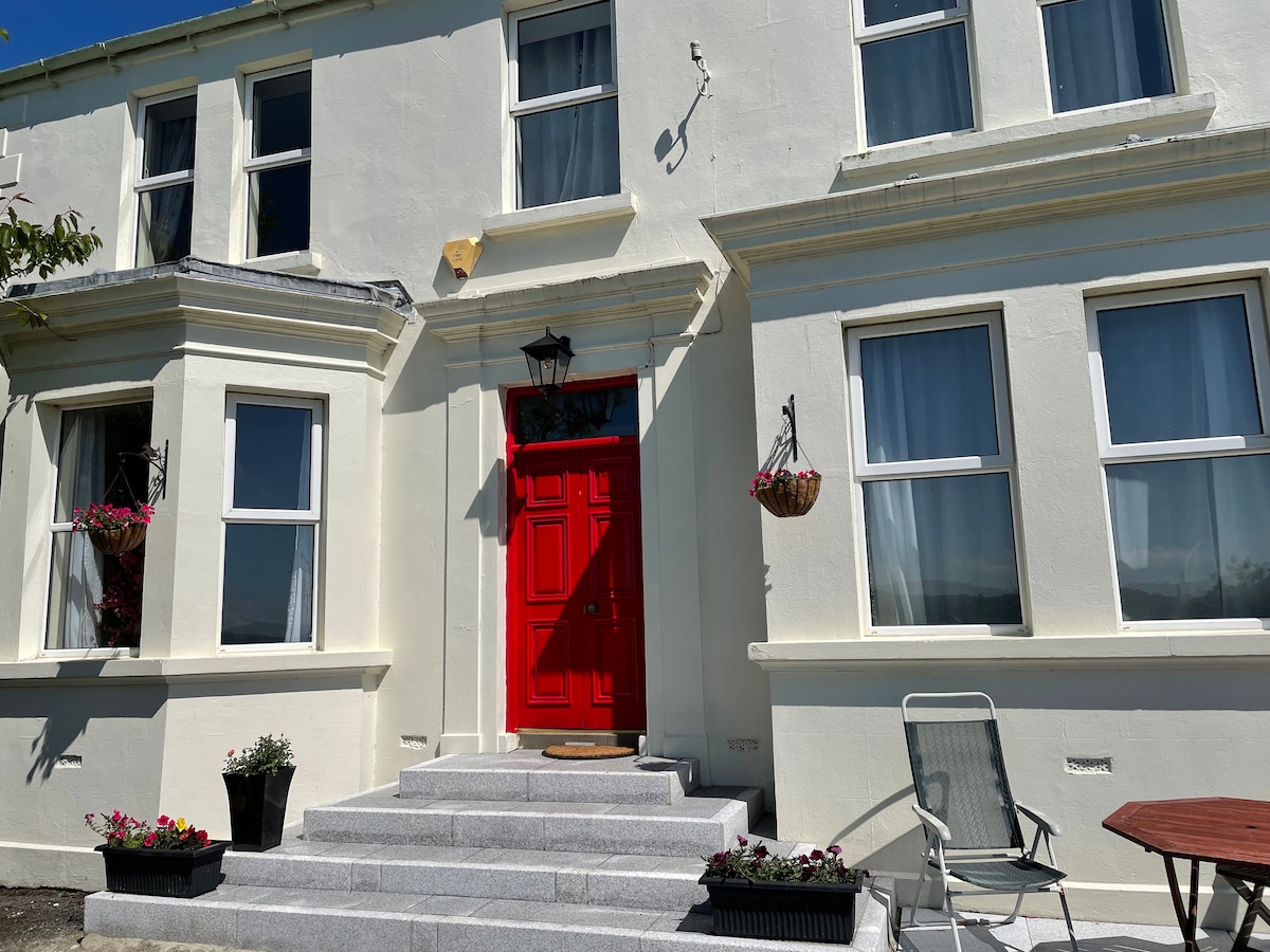 Stórkostlegt svefnherbergi á jarðhæð á jarðhæð með frábæru útsýni, en suite baðherbergi í Natural marmara steini ganga í sturtu 1,5m , hégómi spegill. sefur 3 fullorðnir að lágmarki, 1 frábær king-size rúm og 1 einbreitt rúm. Ókeypis hratt ÞRÁÐLAUST NET, rúmföt úr bómull, nauðsynjar, handklæði, látlaus ókeypis morgunverður, öruggt bílastæði á staðnum með greiðan aðgang að borðstofu með arni 55” stafrænt Netflix-flatskjásjónvarp, 10 mílur Londonderry, 1 klst. Belfast, 40 m strendur, Giants causeway, WAW