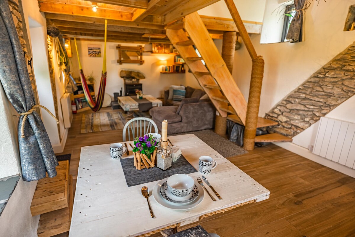Þessi fallega, endurbyggði, gamli sjómannabústaður er fullkominn staður fyrir rólegt rómantískt frí. Afskekkti bústaðurinn okkar, sem er steinsnar frá ströndinni, býður upp á háhraða breiðband með ljósleiðara. Með áberandi steinveggjum og viðarbjálkum gefur það notalega tilfinningu. Þetta er tilvalinn staður til að slaka á og slaka á. Eða á þessum síbreytilegu tímum, af hverju ekki að prófa afskekkta vinnuviku frá ströndinni og halda sambandi frá jaðri Atlantshafsins!