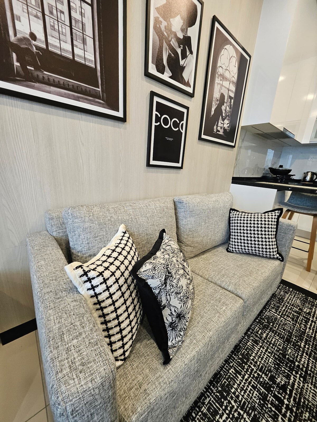 Enjoy this studio apartment inspired by Coco Chanel where black and white sophistication meets comfort. Located in Desa Sri Hartamas, guests will be able to enjoy cafés and restaurants within walking distance. The apartment building is equipped with amenities including swimming pool, gym, children's play area, lounges and co-working spaces. Book now for a chic staycation or a relaxing escape!