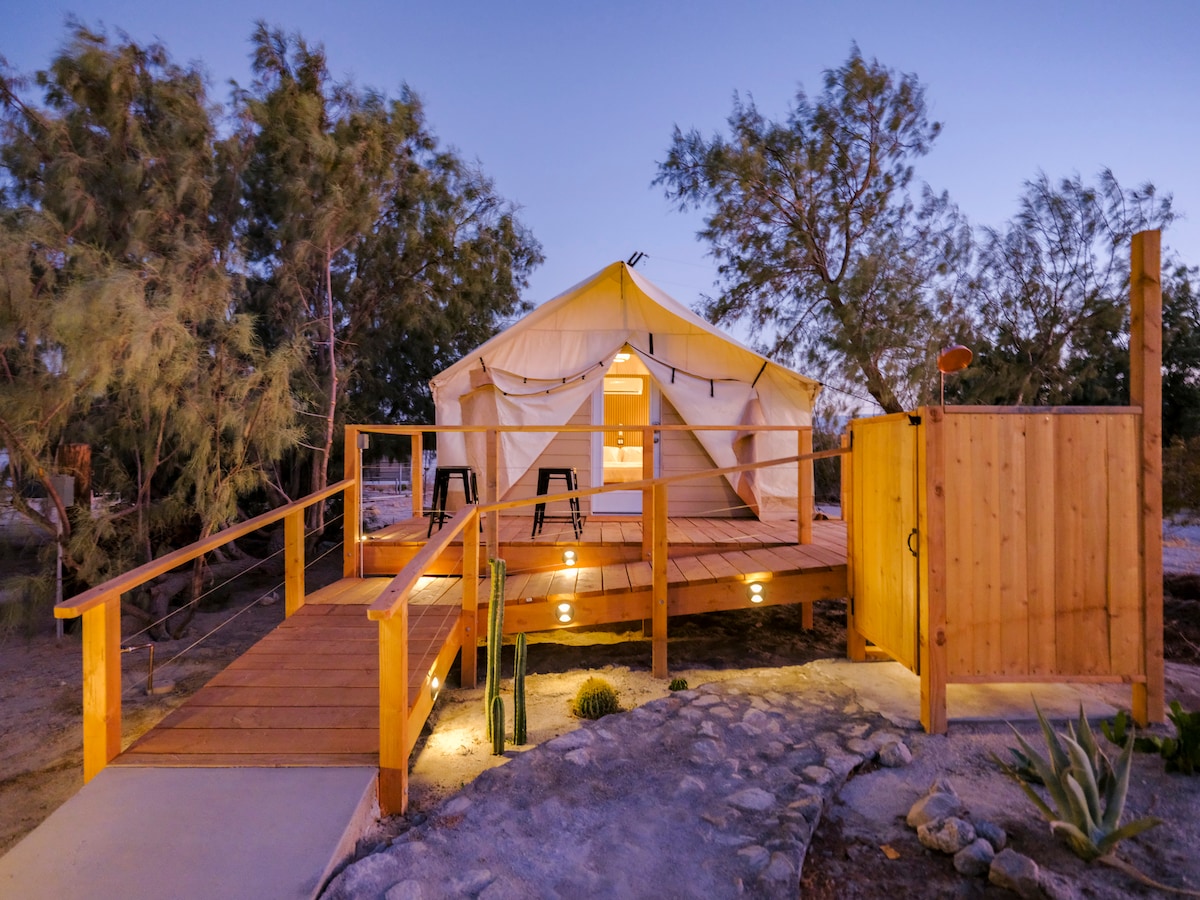 Uppgötvaðu glæsilegt landslagið sem umlykur þennan gististað. 5 hektara eign á mörkum BLM-lands og í aðeins 1,6 km fjarlægð frá Pacific Crest Trail. Í 30 mínútna fjarlægð frá sögulega námubænum Julian sem er nú þekktur fyrir eplaböku og síder. Flýja raunveruleikann í þessari eign utan nets. Slakaðu á og njóttu sólarinnar. Á kvöldin skaltu njóta árstíðabundna heita pottsins (í boði frá apríl til nóvember) fyrir tvo! Nóg pláss til að setja upp fleiri tjöld.