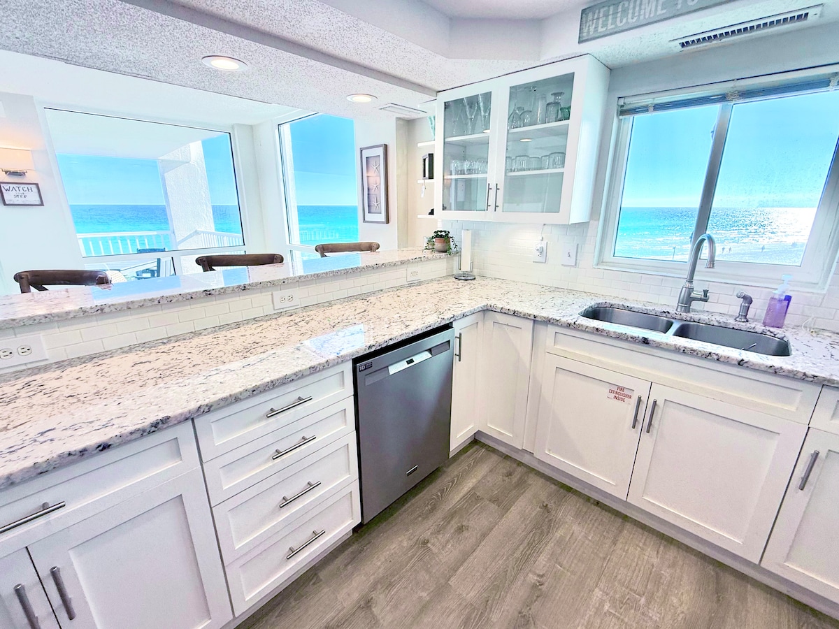 Nýlega uppfærð 1 svefnherbergi/ 2 bað íbúð með innbyggðum kojum. Staðsett við ströndina á 19. hæð með stórkostlegu útsýni yfir smaragðsvötnin og ósnortnar hvítar sandstrendur Mexíkóflóa. Fullbúið eldhús með nýjum granítborðplötum og skífutækjum. Áreiðanlegt hraðvirkt háhraðanet allan tímann. Á meðal þæginda á dvalarstaðnum eru stór sundlaug og heitur pottur, tiki-bar við ströndina sem býður upp á frosna drykki og bjór. Frábært kaffihús sem býður upp á heitan morgunverð, pizzu, samlokur og salöt.