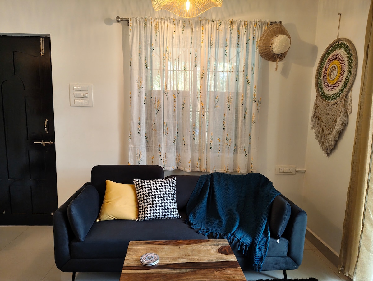 Experience slow living at The Odd Table, a cozy studio tucked in the quiet lanes of Mandrem, just 5 mins from the beach. Your private studio comes with a fully equipped kitchen, workspace, and access to a rooftop common area—home to the Odd Table, where travelers meet to work, read, or unwind on the hammock. Join our weekly events, share stories, and connect with like-minded souls. Close to Prana, Dunes, and only 10 mins to Morjim & 20 mins to Siolim, this space lets you create and belong.