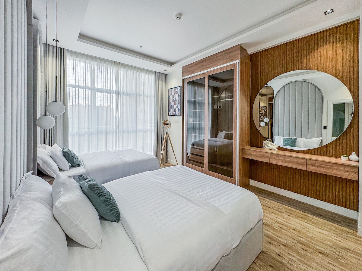 Þessi einkennandi staðsetning státar af einstökum stíl með húsgögnum hönnuða (Paramount Pictures). Það er staðsett í hjarta höfuðborgarinnar og býður upp á ógleymanlega upplifun með greiðum aðgangi að öllum helstu kennileitum í innan við 5 mínútna akstursfjarlægð. Hvort sem þú ert í viðskiptaferð eða að leita að friðsælu afdrepi frá heiminum er þessi eign fullkomin fyrir bæði framleiðni og afslöppun.