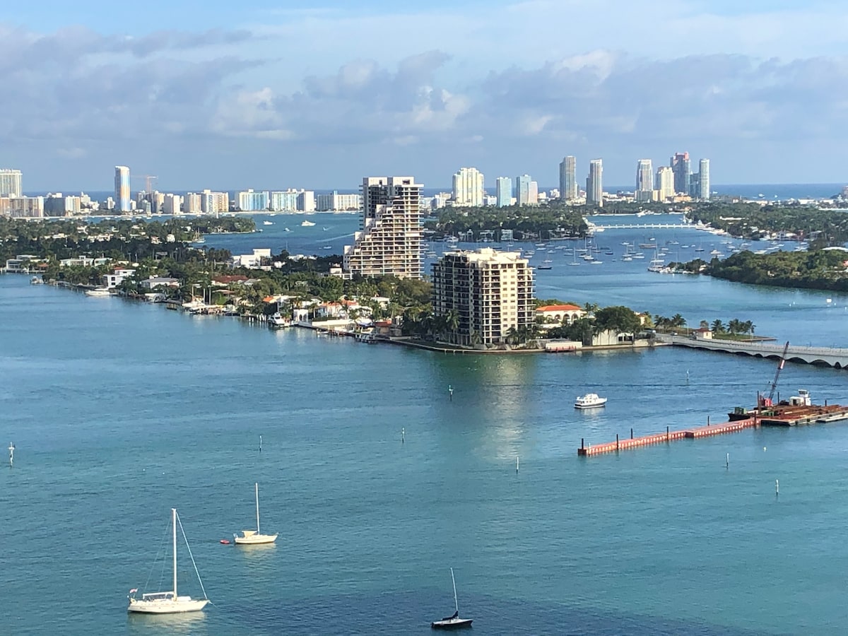 Bluewater Realty Miami býður ykkur velkomin á The Grand sem er staðsett í miðbæ Miami við Biscayne-flóa. The 2 bedroom Feels Like Summer! is the ultimate retreat. Njóttu ótrúlegs útsýnis yfir Biscayne-flóa sem vekur hrifningu þína. Með South Miami Beach í 3 km fjarlægð getur þú notið sólarinnar á Miami Beach en samt fundið fyrir orku í miðborg Miami. Þetta er það besta úr báðum heimum sem veitir þér fullkomna upplifun í Miami. Ofurgestgjafar þínir á Airbnb, Rachel og Mia Bluewater Realty Miami