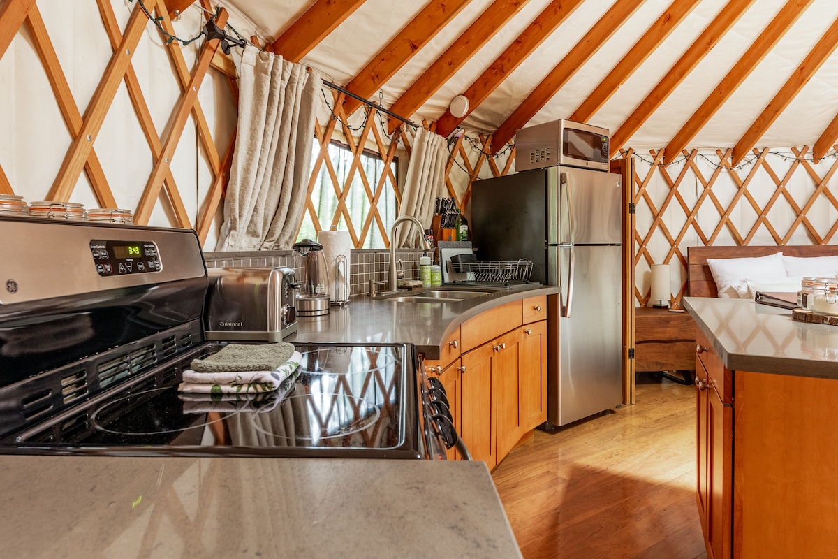 Yurt-tjaldið er á átta hektara mosavöxnum skógi við suðurjaðar Stillaguamish-árinnar og státar af 450 fermetra vel völdum antíkhúsgögnum til að skapa afslappað og rómantískt andrúmsloft. Þetta lúxusútilegu athvarf er tilvalinn staður fyrir ævintýri í kringum Mountain Loop Highway í norðri Cascades, þar á meðal gönguferðir, sund, flúðasiglingar, gönguleiðir, fjallgöngur og skíði.