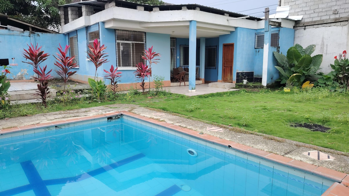 Staður til að aftengjast borginni og njóta fallega hafsins. Aðeins 4 húsaraðir (í 5 mín göngufjarlægð) finnur þú eina af fallegustu ströndum Ekvador. Í húsinu er öll aðstaða til að gera upplifun þína sem besta. Með vel dreifðum rýmum í herbergjum með loftkælingu, vel búnu eldhúsi, sundlaug, 2 bílastæðum, sjónvarpsherbergi, svölum og fallegu borði fyrir utan sundlaugina. Hugsaðu um hlýjuna á heimilinu.