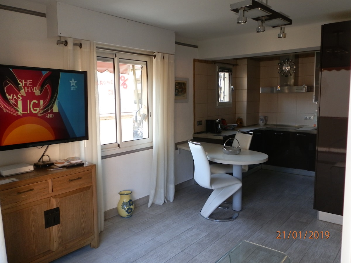 Heillandi íbúð á landamærum Mónakó, enduruppgerð með 45 fermetra svæði á ** 3. hæð án lyftu ** í friðsælli byggingu. Samanstendur af stofu með amerísku eldhúsi, svefnherbergi, baðherbergi með sturtu, salerni og svölum. Mikilvægt!!! Eins og er er verið að byggja við hliðina á byggingu. Hávaði er til staðar að degi til og getur valdið þér óþægindum. Ég vildi bara láta þig vita.