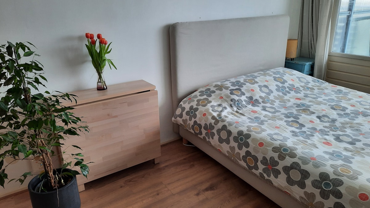 Stór og þægileg íbúð nálægt miðborg Amsterdam með sérbaðherbergi og salerni. Á hverjum morgni færum við þér gómsætan morgunverð. Hraðasta ÞRÁÐLAUSA NETIÐ í boði í Amsterdam. Þægilegt stórt hjónarúm (1 .2,00). Kaffi- og teymið og minibar með ódýrum drykkjum (þú getur líka komið með þína eigin). Rólegt og öruggt hverfi. Almenningssamgöngur 20 mín til Amsterdam Centre, strætó hættir á aðeins 180 mtr. Á lóð Ajax-stadium „De Meer“. Biddu okkur um flugvallarþjónustu.