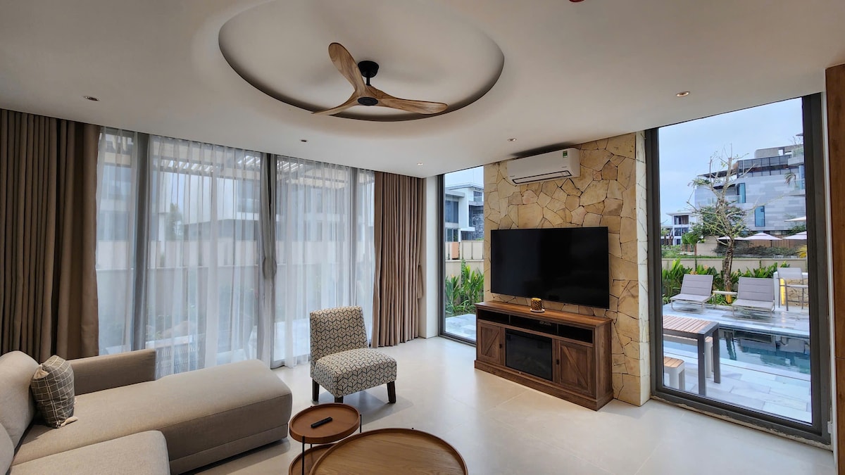 Komdu með alla fjölskylduna til Hoi An Wyndham Beachfront Resort. Í villunni okkar eru þrjú rúmgóð svefnherbergi með sér baðherbergi og aðskildu salerni. Þetta er fullkominn staður til að slaka á og slaka á með ástvinum þínum. Fáðu þér hressandi dýfu í einkasundlauginni þinni eða skoðaðu hinar tvær sundlaugarnar á dvalarstaðnum. Dvalarstaðurinn býður upp á einkaaðgengi að ströndinni og í rólegheitum í 25 mínútna gönguferð er að hinum þekktu klúbbum An Bang Beach þar sem hægt er að njóta sín í mögnuðu sólsetrinu