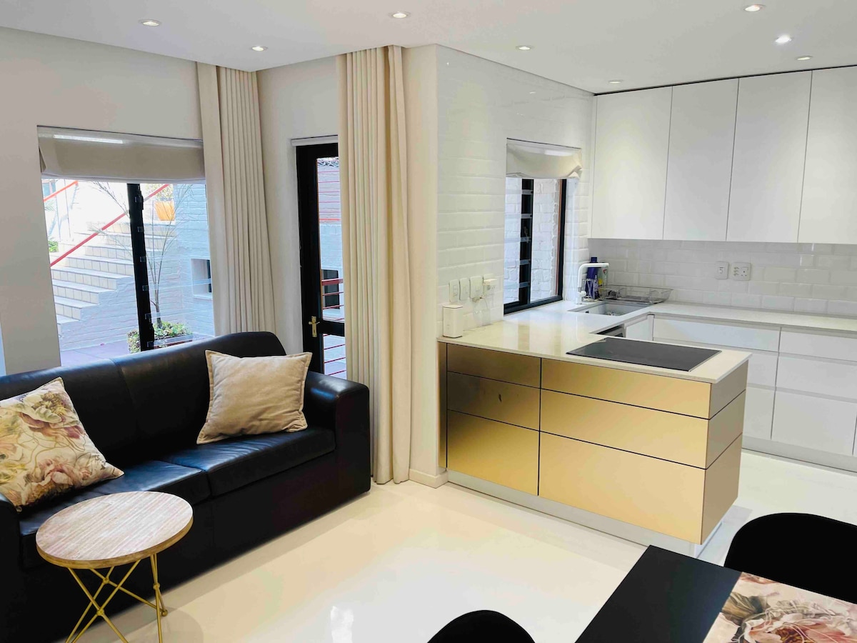 This spacious bright double volume two bedroom, two bath unit enjoys a great uninterrupted view of the Melville Koppies and Johannesburg's densely forested suburbs. Watch the sunset from the patio. The unit is stylishly decorated, uncluttered. A great place to relax and decompress. The open plan living area leading onto the patio. Fold back the stack doors and bring nature into your living room. Fully equipped modern kitchen, solar supply, wifi and cotton linen is guaranteed.