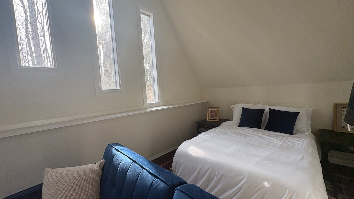 Njóttu þessa skemmtilega notalega bústaðar með svefnherbergislofti! Þessi yndislega 1 herbergja og einstaki staður hefur sinn stíl. Það er byggt í 1960 á bak við aðalhúsið, það hefur gólf til lofts furu spjaldið, furugólf og arinn. Það hefur nýlega verið endurbyggt með nýju flísalögðu baðherbergi , nýuppgerðu eldhúsi og tækjum úr ryðfríu stáli. Ný hita- og lofteining var sett upp sumarið 2021. Furupanelið og 16 feta hátt til lofts gefa það til að „kagey“ líði.